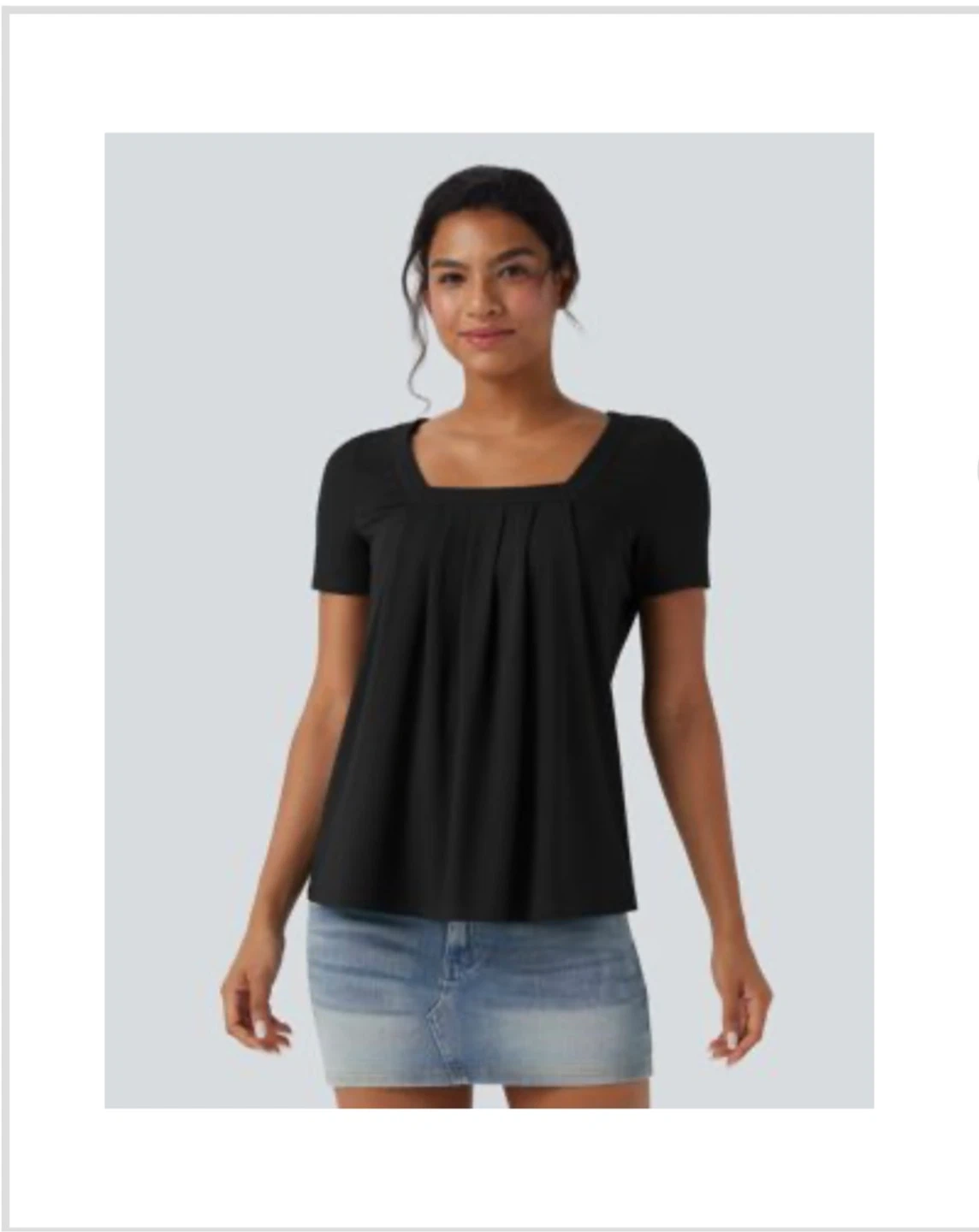 Selling a Halara black square neck t-shirt in size L. It's in great condition and ready for a new wardrobe!