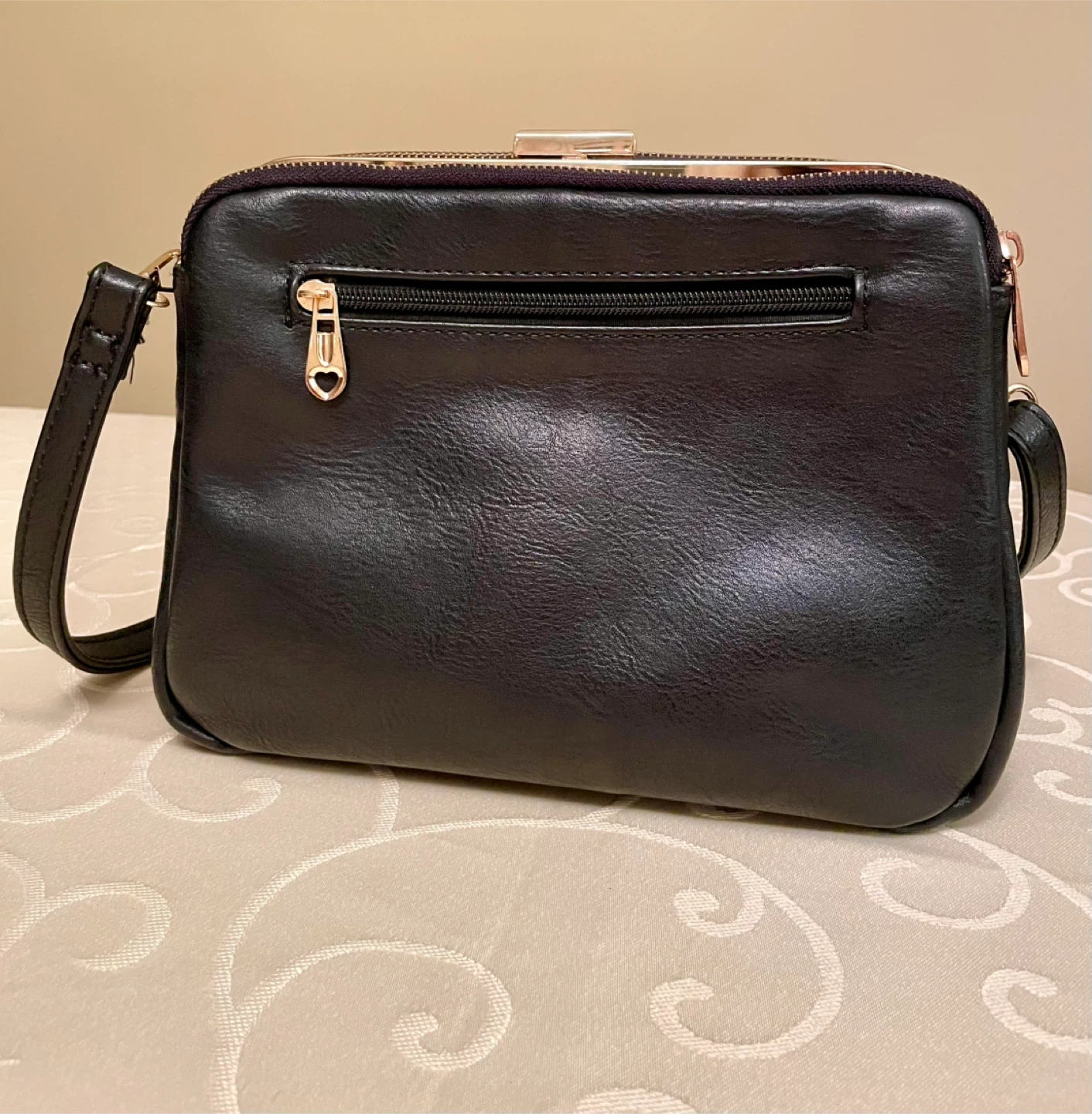 Three clean spacious compartments with inner zip pocket and a slip pocket are designed for you to keep your cash, credit cards, makeup, travel cards and smartphones organized well. Thereβs an extra zip compartment at the back of the bag.
