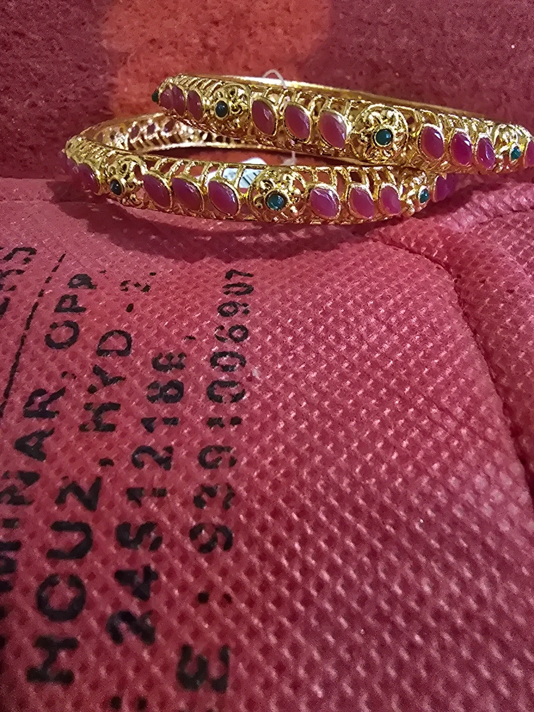 Gold Bangle Set with Red and Green Stone🏆