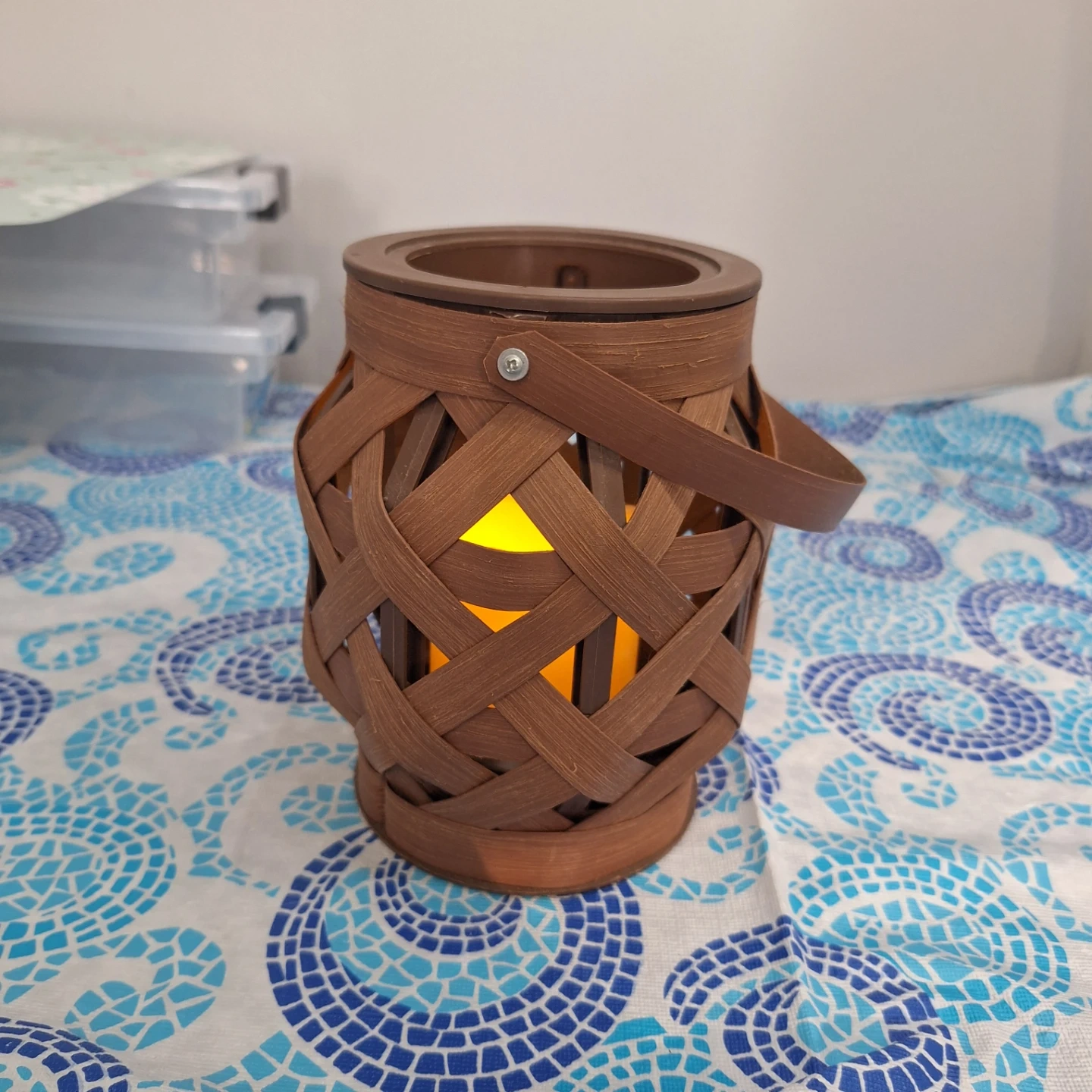 Brown Woven Lantern with LED Candle
