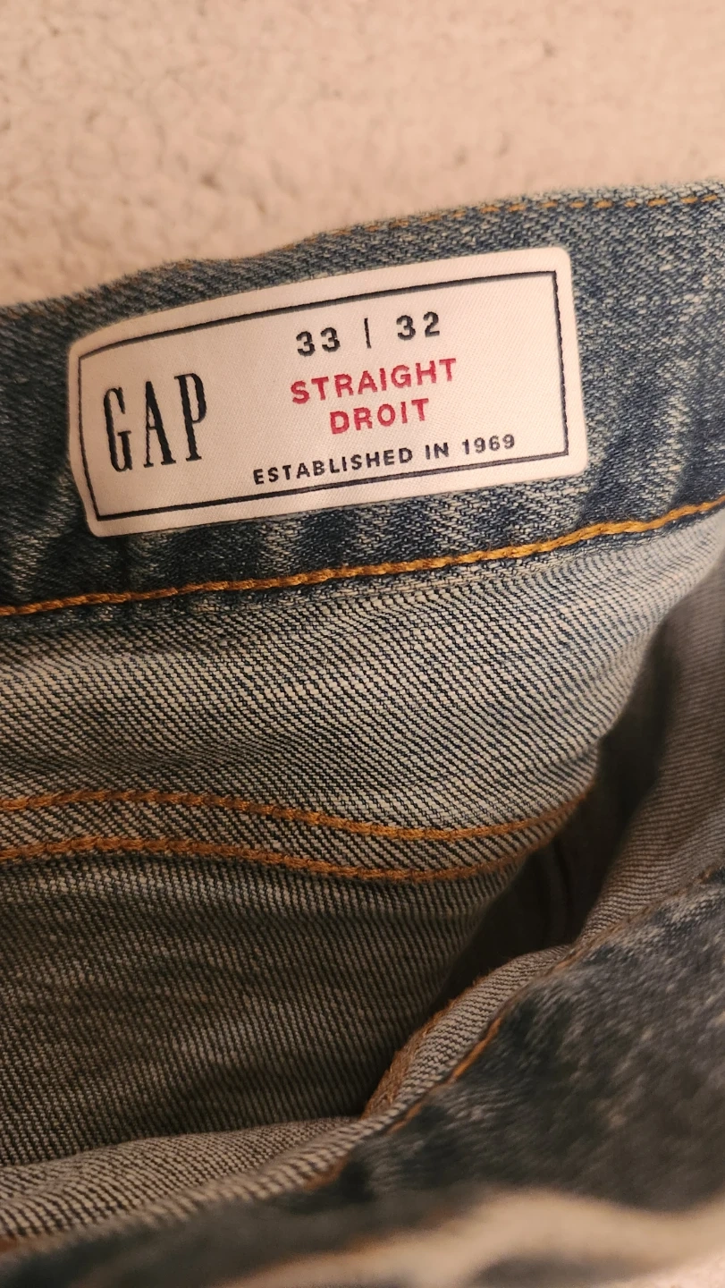 These are Gap straight fit jeans in a size 33 waist and 32 inseam. Made from durable denim. Great for everyday wear!