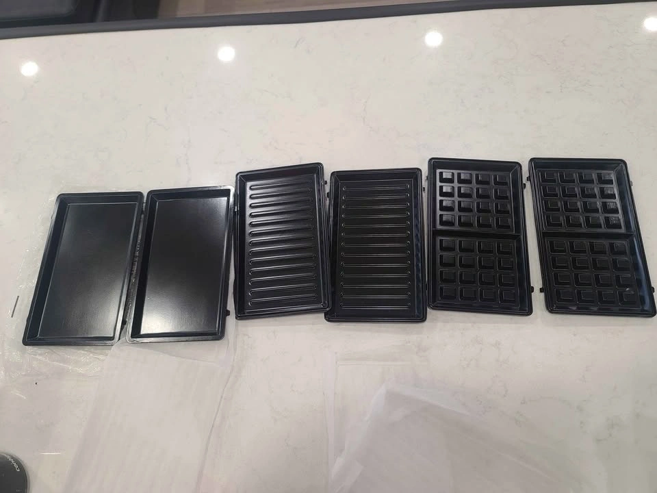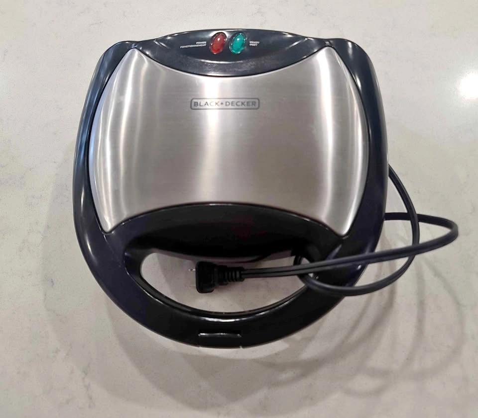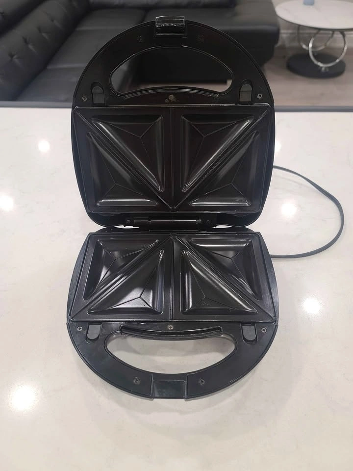 Black & Decker sandwich maker with interchangeable plates in good working condition. Includes 4 different plate types: Sandwich plates (attached to machine), Waffle plates, Grill / panini plates, and Flat cooking plates. Perfect for making sandwiches, waffles, grilled items, and snacks. Plates are removable and easy to clean. Compact and convenient kitchen appliance. Moving out sale. Pickup: 60 Pavane Linkway, Toronto (M3C 1A1)