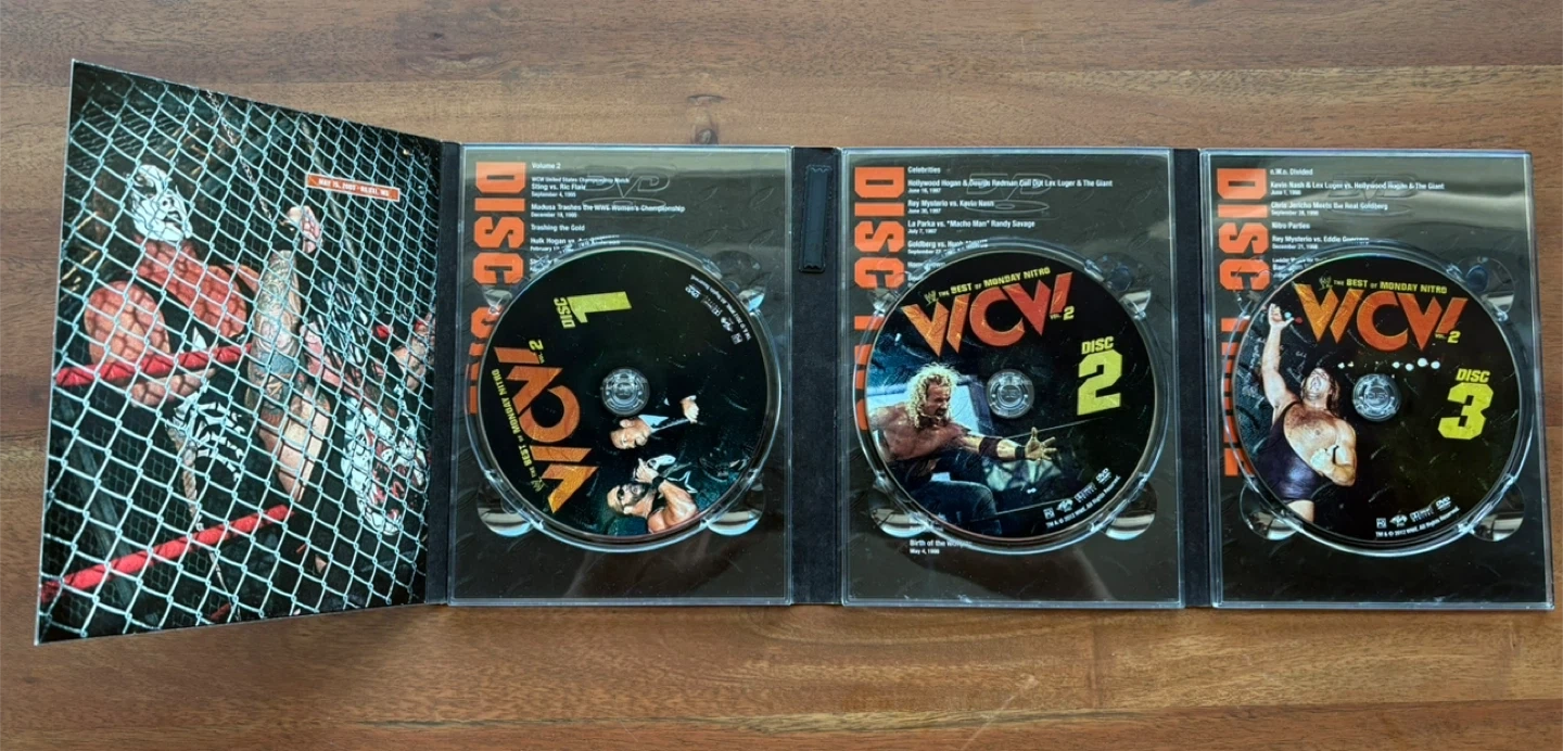 Selling a used WCW The Best of Monday Nitro Vol. 2 DVD set. It includes 3 discs of classic wrestling action! Perfect for any wrestling fan looking to relive the Monday Night Wars