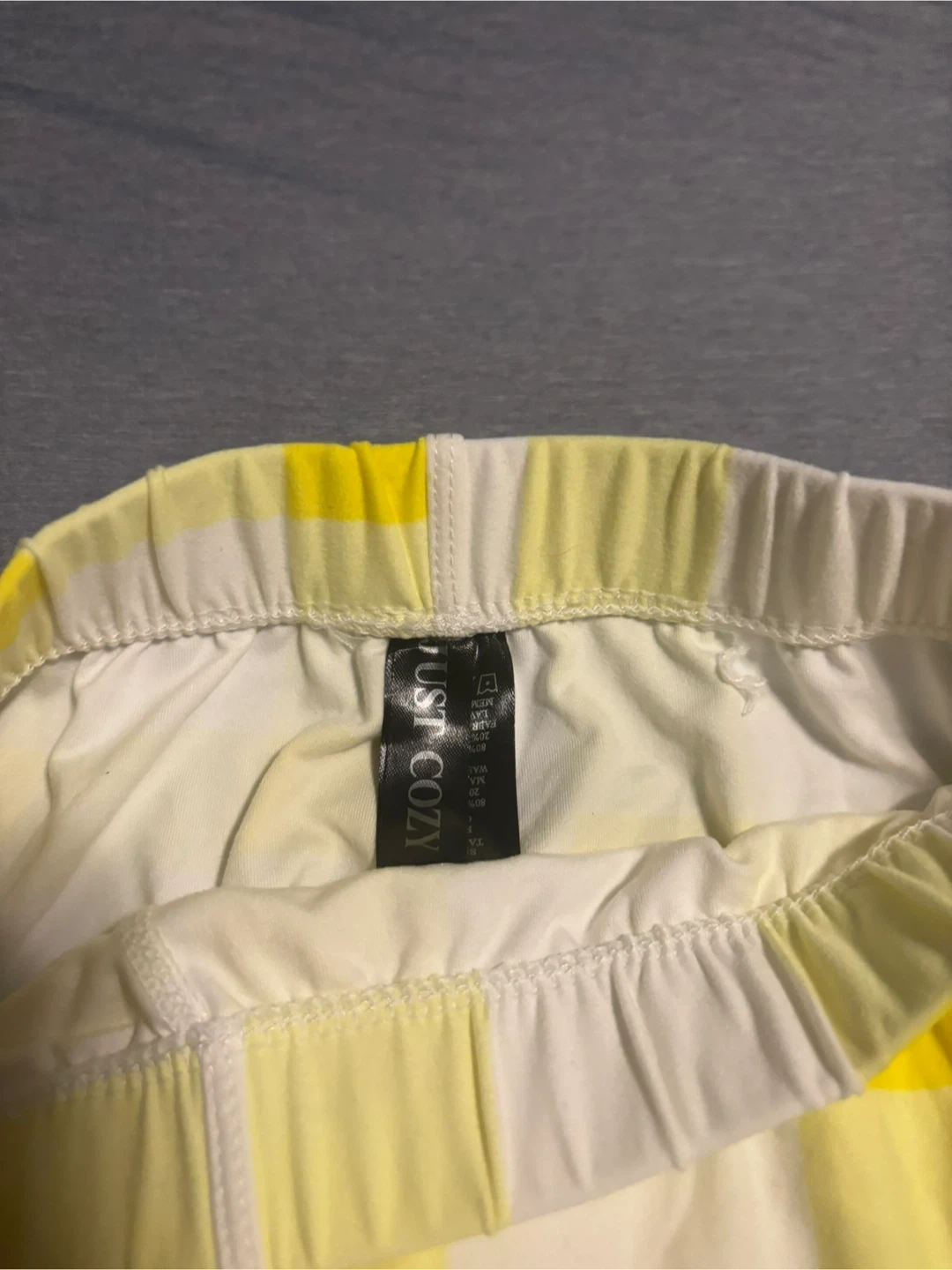 Selling a pair of Just Cozy pants in a cheerful yellow plaid pattern! They are a size Xs/small and are made of a soft, cozy material. Perfect for lounging around the house or running errands