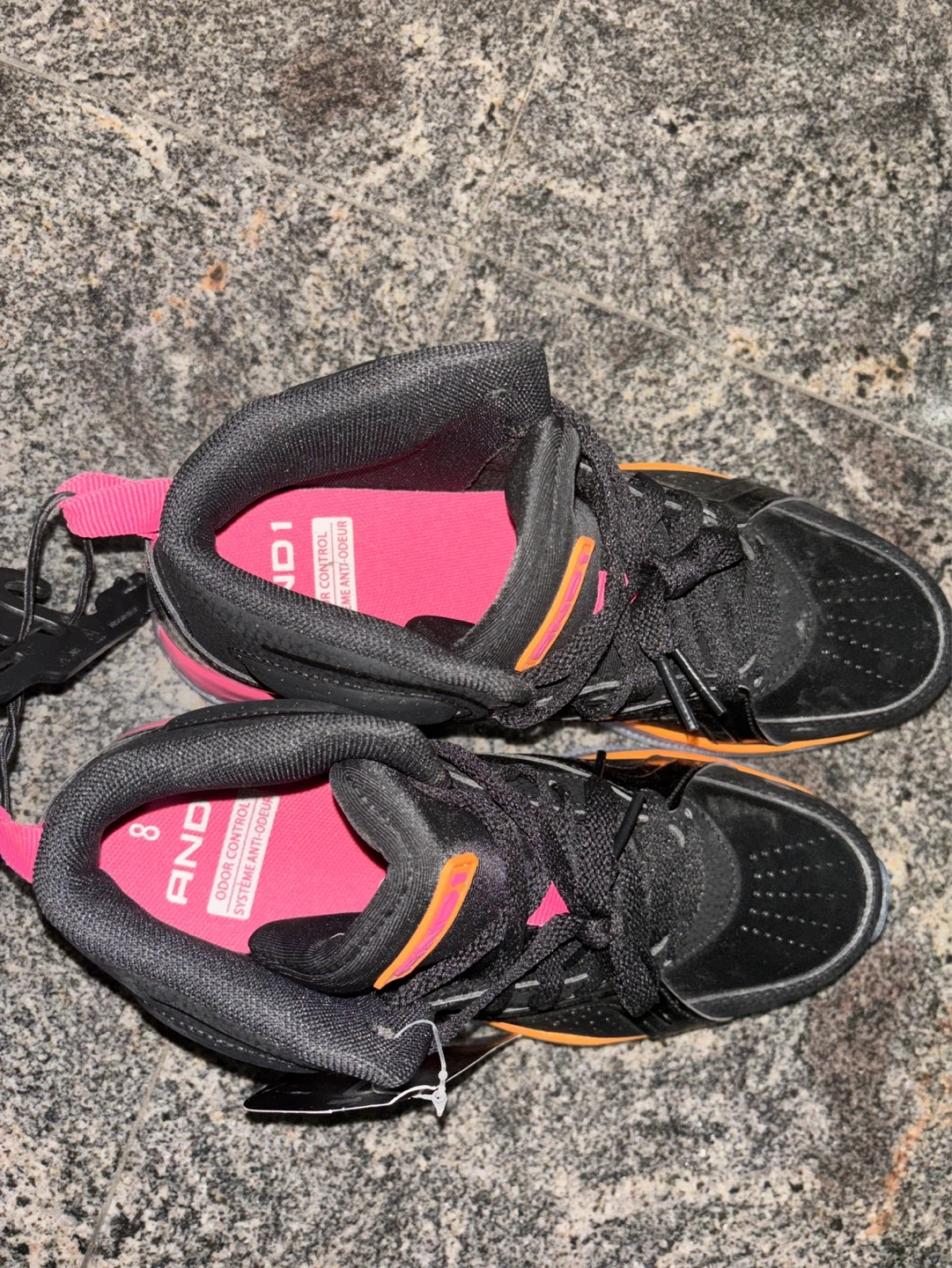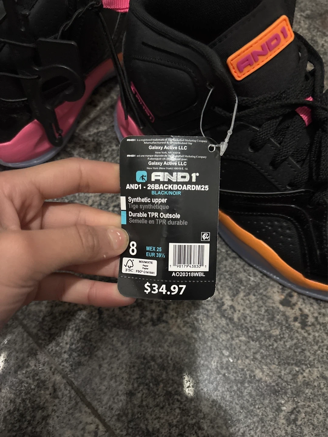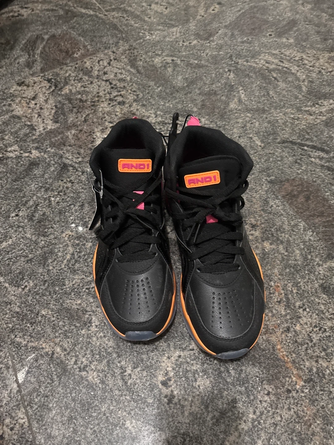 AND1 26BACKBOARDM25 basketball shoes in black with pink and orange accents. Synthetic upper with a durable TPR outsole. Size 8 (MEX 25 / EUR 39½).
