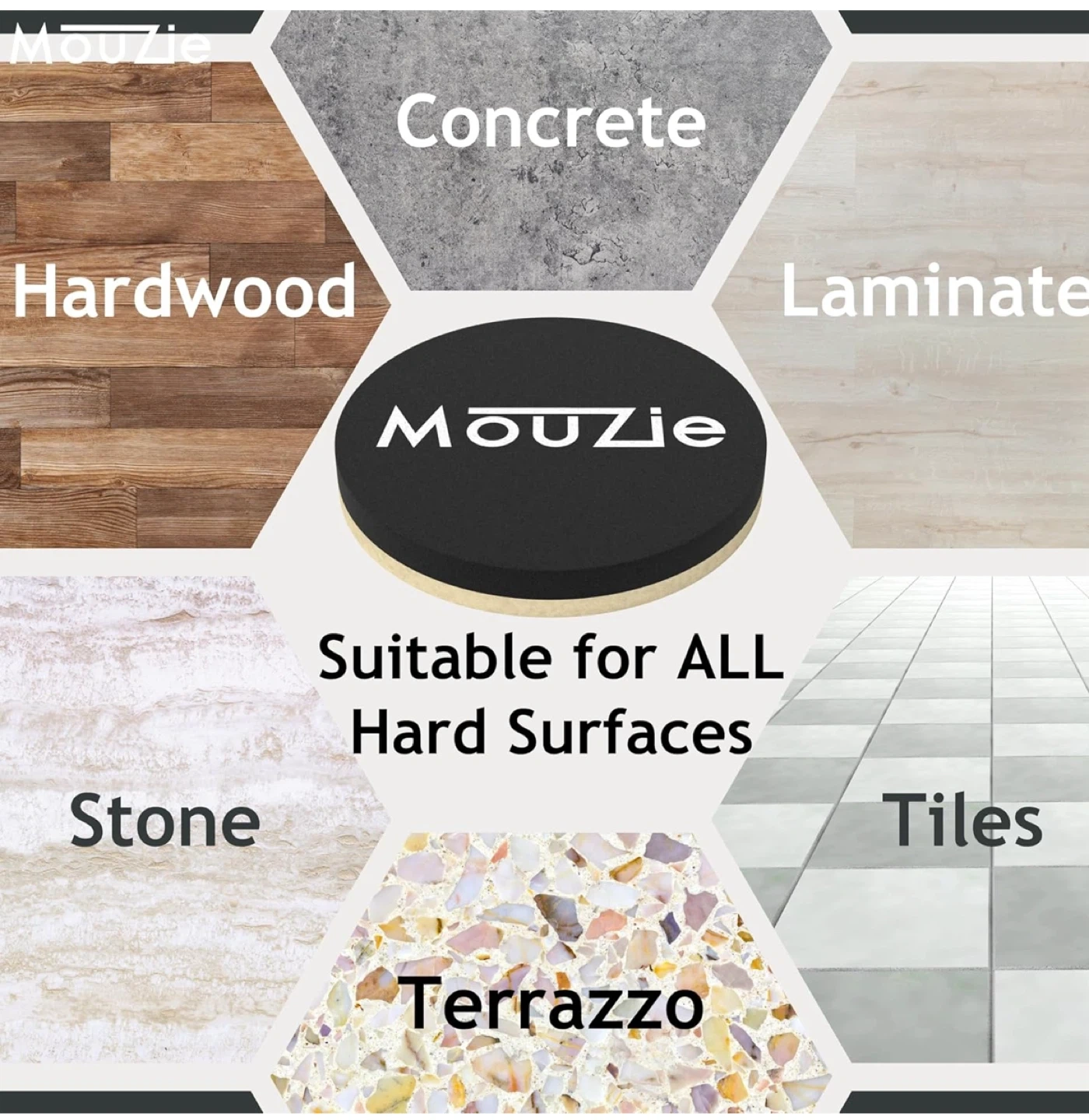 Mouzie premium reusable moving pads are here to help make moving furniture a breeze! They're suitable for all hard surfaces, including hardwood, laminate, tile, stone, concrete, and terrazzo. These sliders are 3 1/2 inches or 9 cm in size.