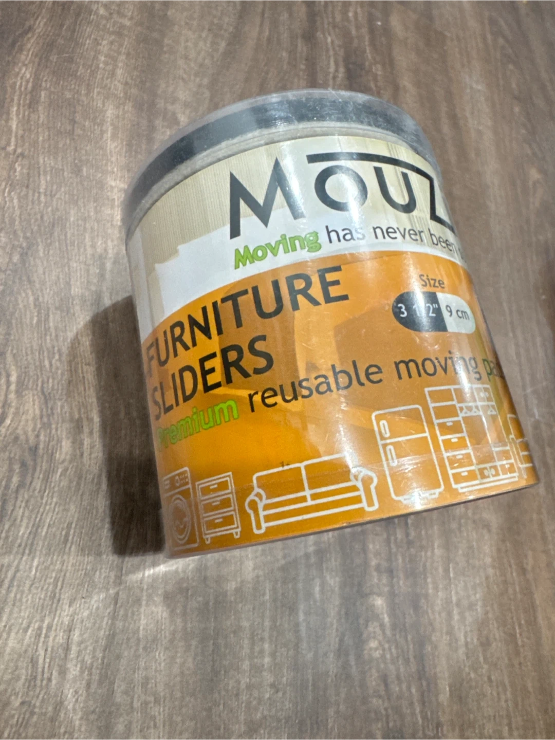 Mouzie premium reusable moving pads are here to help make moving furniture a breeze! They're suitable for all hard surfaces, including hardwood, laminate, tile, stone, concrete, and terrazzo. These sliders are 3 1/2 inches or 9 cm in size.