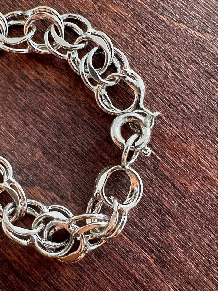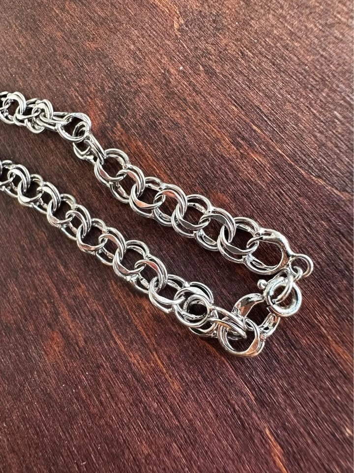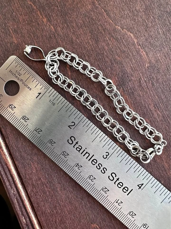 Shiny bracelet. Silver color chain with a cool lobster clasp. Has a little pearl bead detail. About 7 inches long. Pickup only in Coquitlam, Westwood Plateau, behind IGA.
