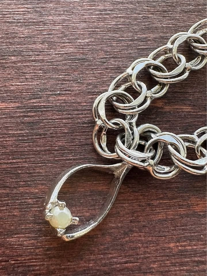 Vintage Chain Bracelet w Pearl Bead