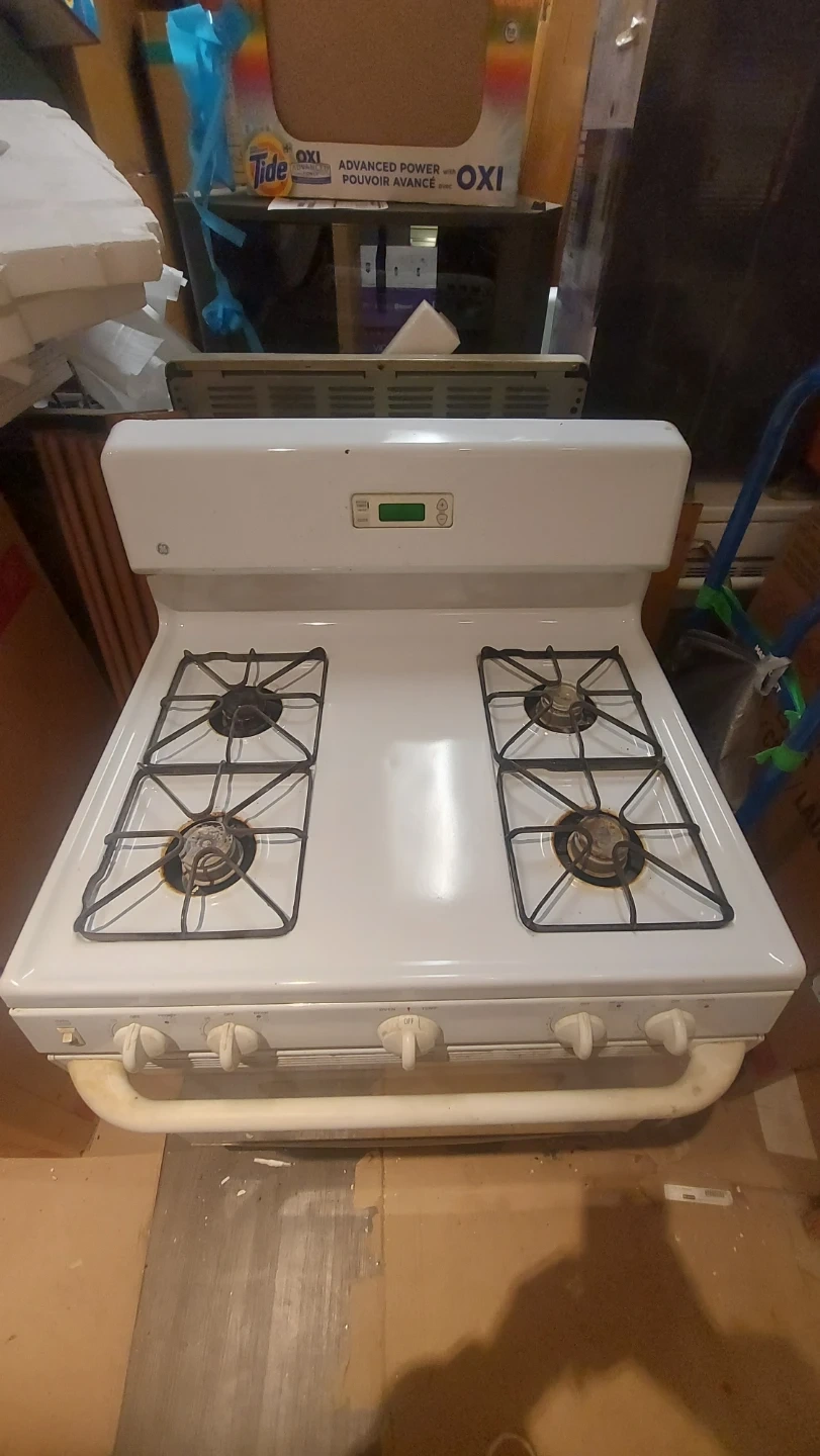 Selling a GE gas range stove. It's white and has four burners. LG fridge The dimensions 26.5" wide, 26" deep and 65" high in good condition. Can get as a combo. Both used but, in good working condition.
