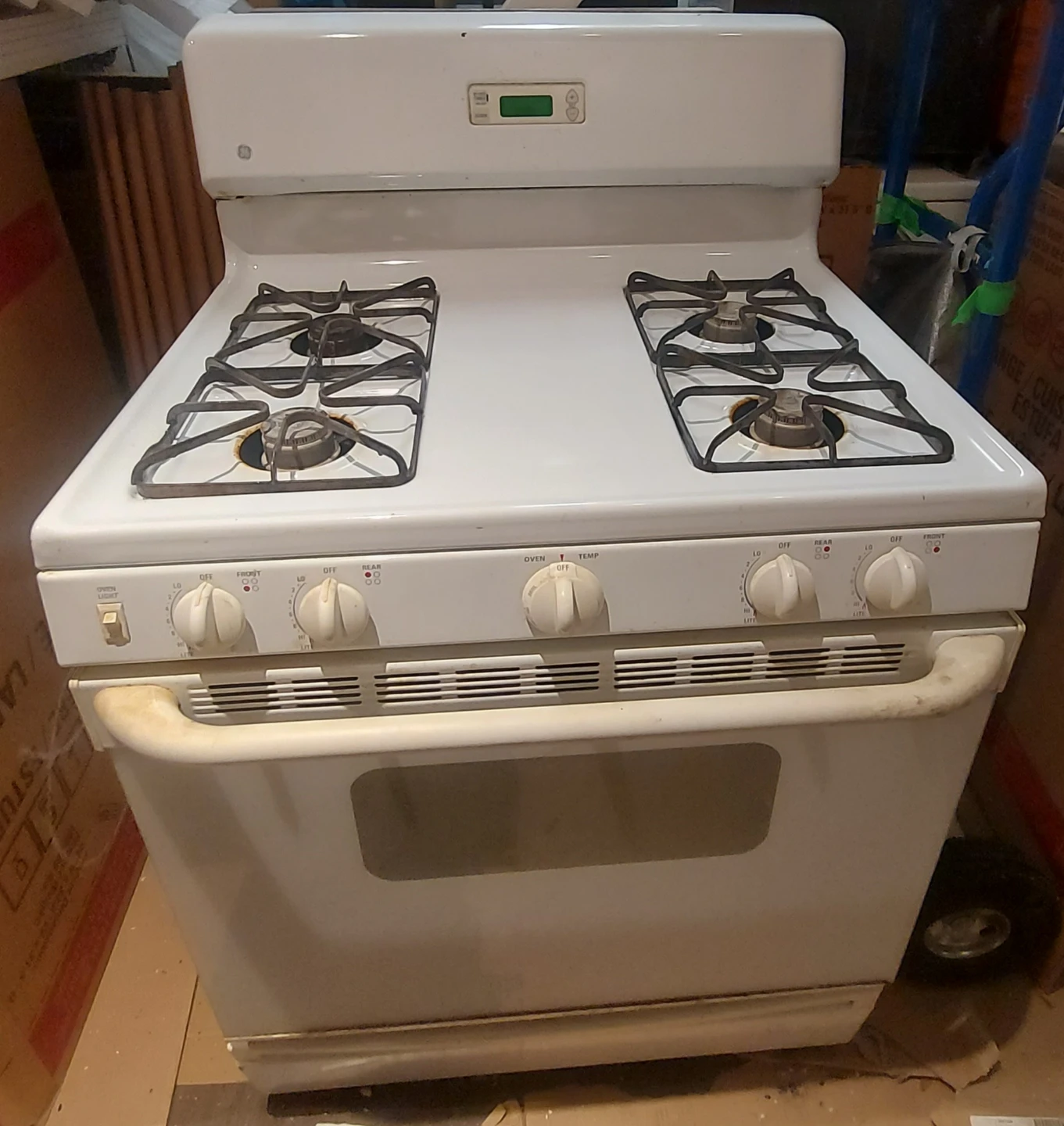 Selling a GE gas range stove. It's white and has four burners. LG fridge The dimensions 26.5" wide, 26" deep and 65" high in good condition. Can get as a combo. Both used but, in good working condition.