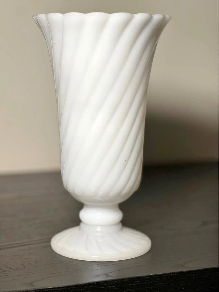π Vintage Milk Glass Pedestal Swirl 9β Vase