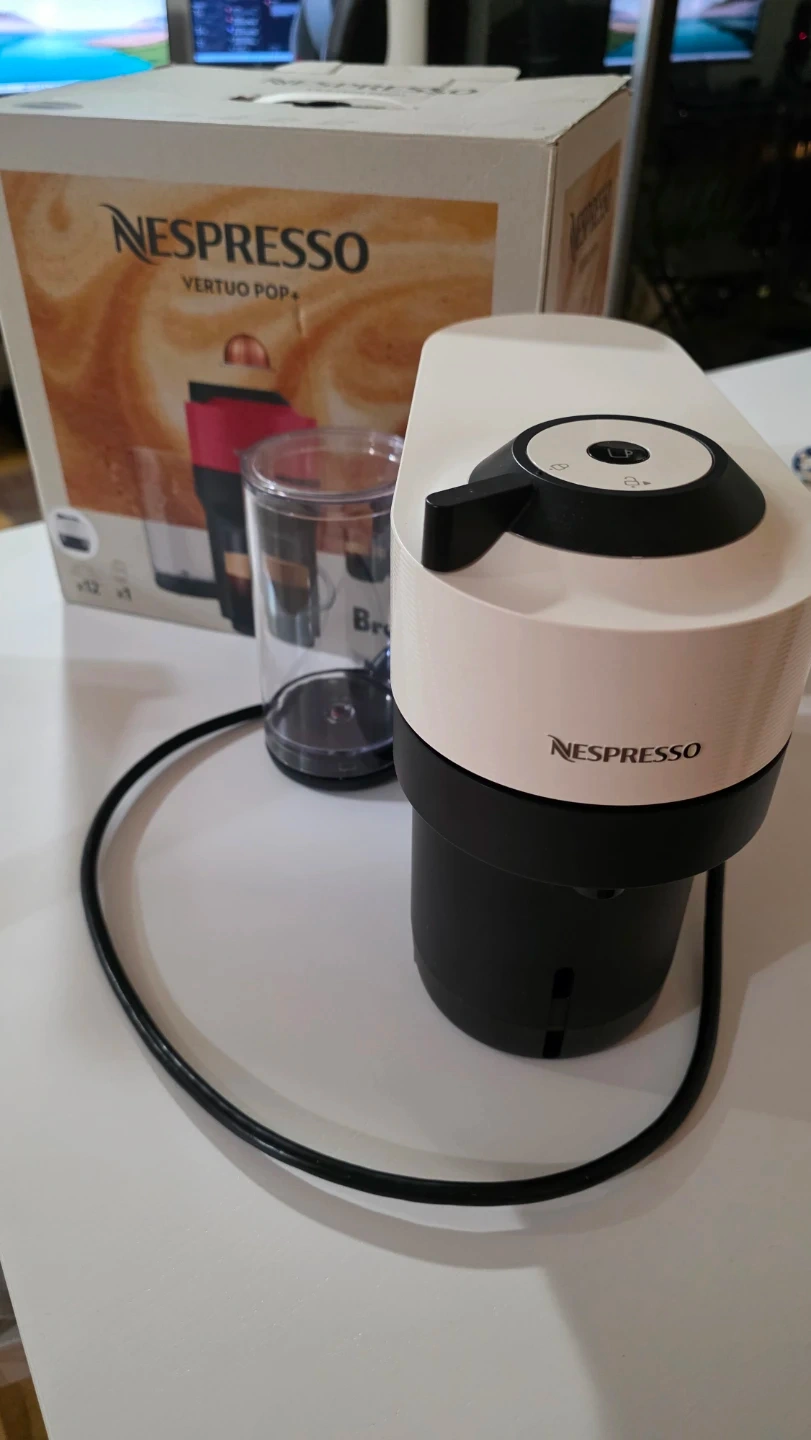 This is a white Nespresso Vertuo Pop+ coffee machine. It comes with a water tank. Includes original box. Works perfectly, excellent condition. I have it for one year and barely used it.