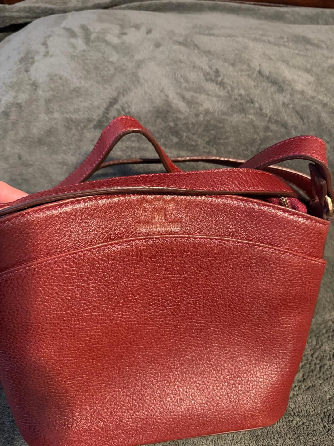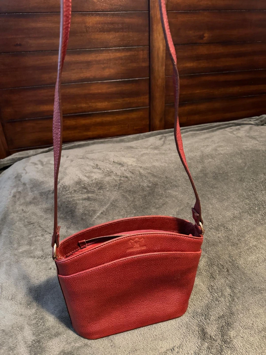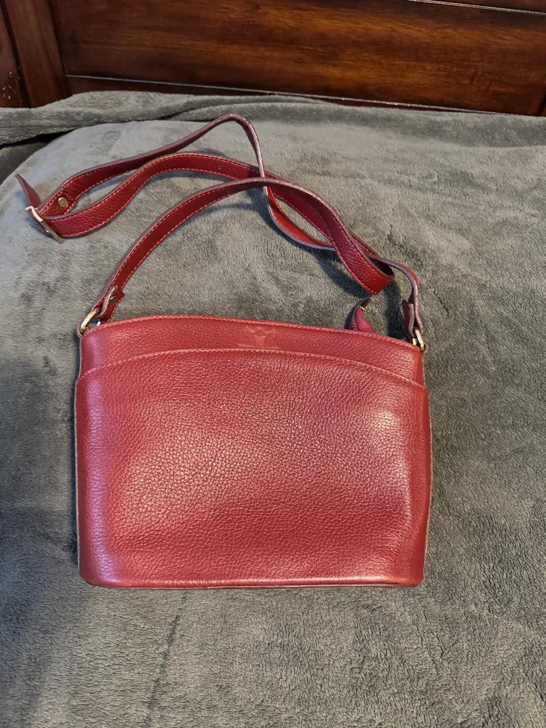 Selling a stylish red real genuine leather crossbody bag. It's in great condition and perfect for everyday use! The colour is a beautiful deep red. It has different pockets to keep your stuff organized. Very high quality