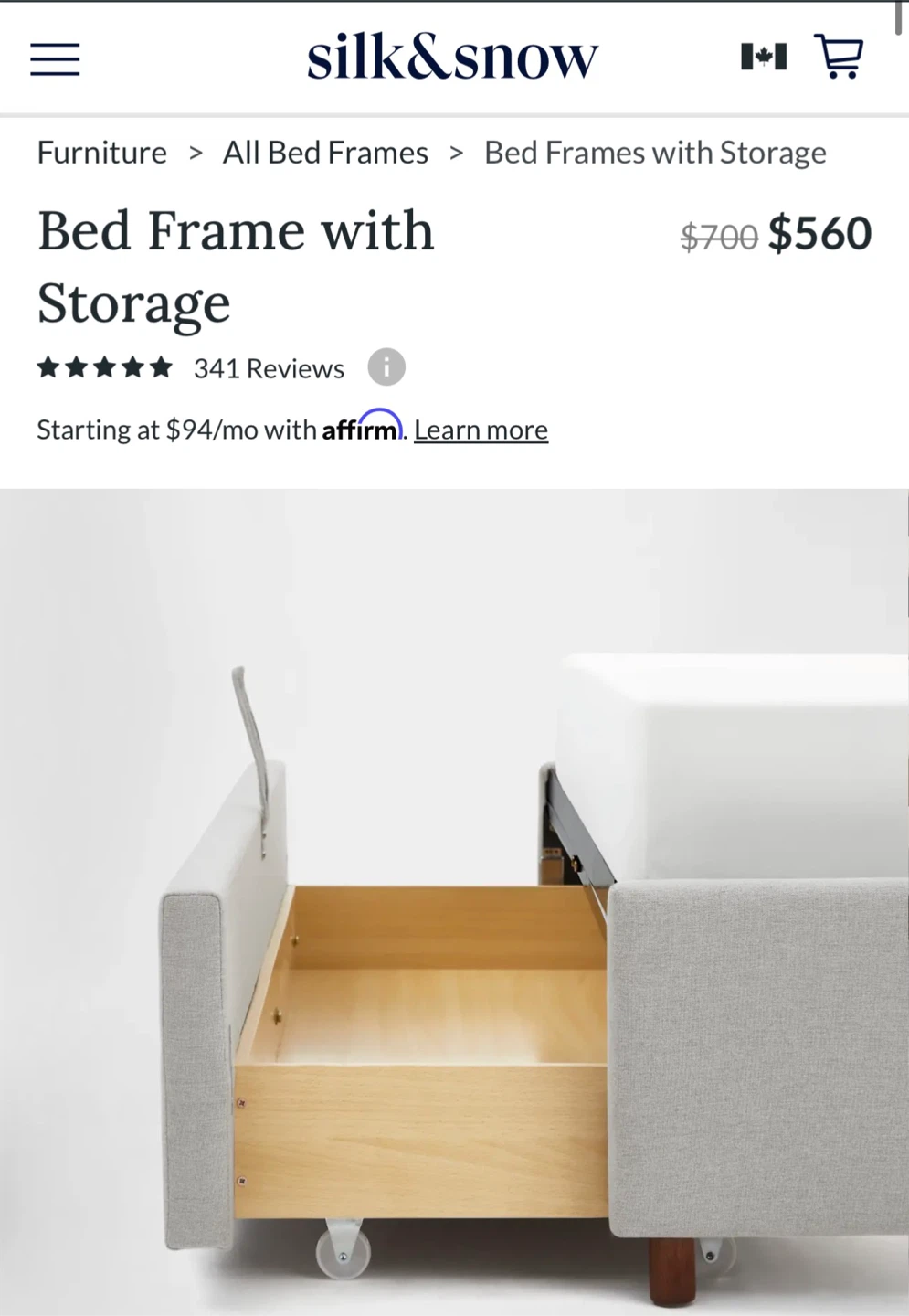 Selling a bed frame with storage from Silk & Snow. It's in great condition and super practical for keeping your space tidy!