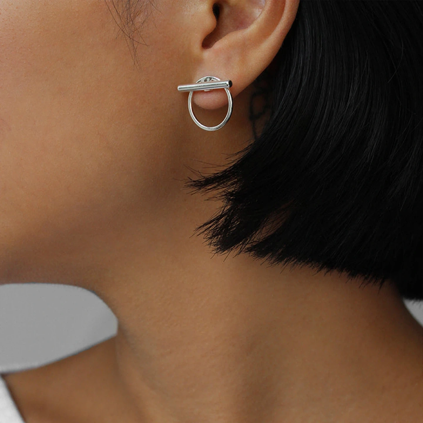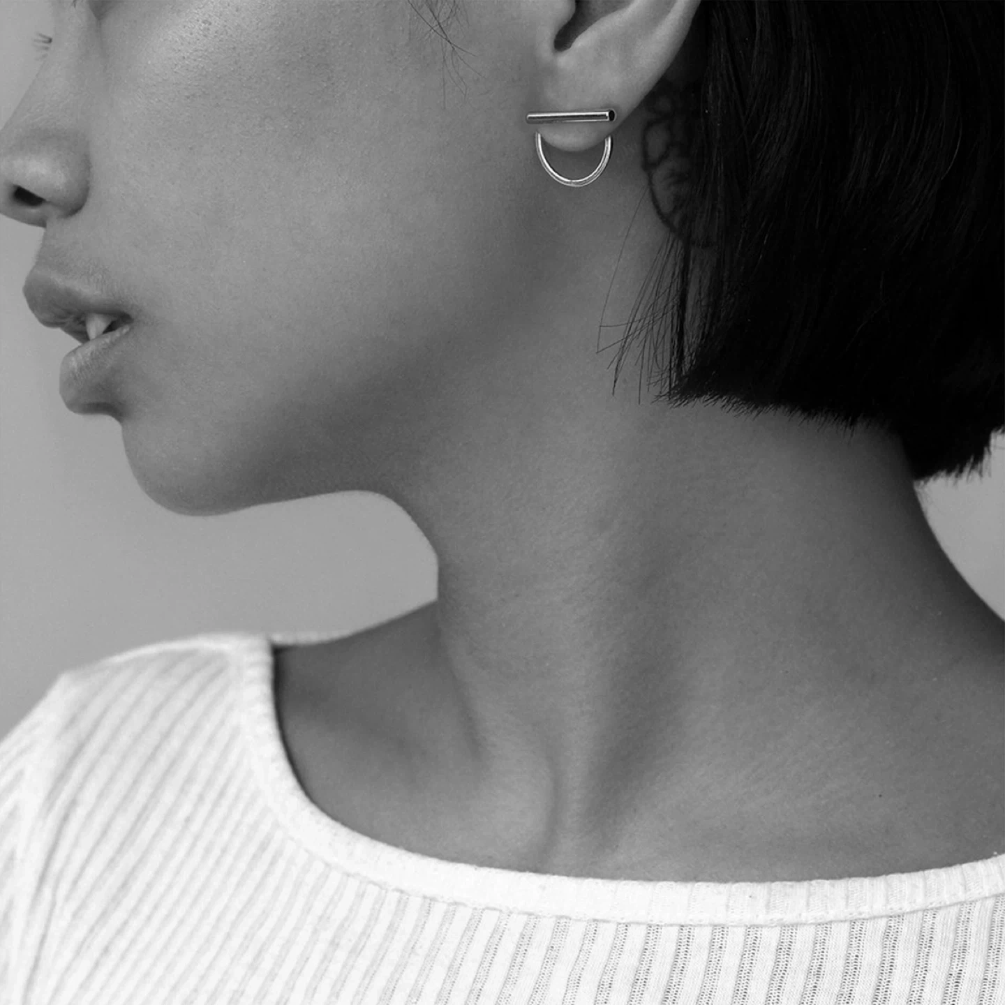 Two separate pieces that hug your ear. The bar of the Rhye earring jackets can also be worn solo. Or personalize it and replace the bar with your favourite stud. Discontinued style. Rare find.