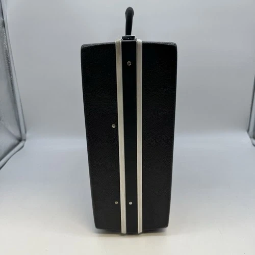 This is a vintage Dionite hard-shell carrying case in very good condition. It features a textured black exterior, chrome trim, and a sturdy handle. The case opens and closes smoothly, the hinges are strong, and the exterior is clean with only light signs of use. The interior is empty and ready for storage, transport, organization, or repurposing for tools, equipment, documents, or collectibles.