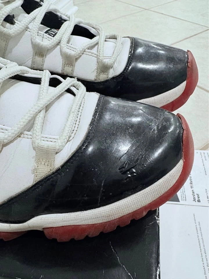 Used. Shows wear including heavy creasing, scuffs on patent leather, light sole fading/yellowing, and wear/ripping on inner ankle lining. Still solid as everyday beaters or for restoration. Comes with original box and StockX papers. Asking $90 - OBO.
