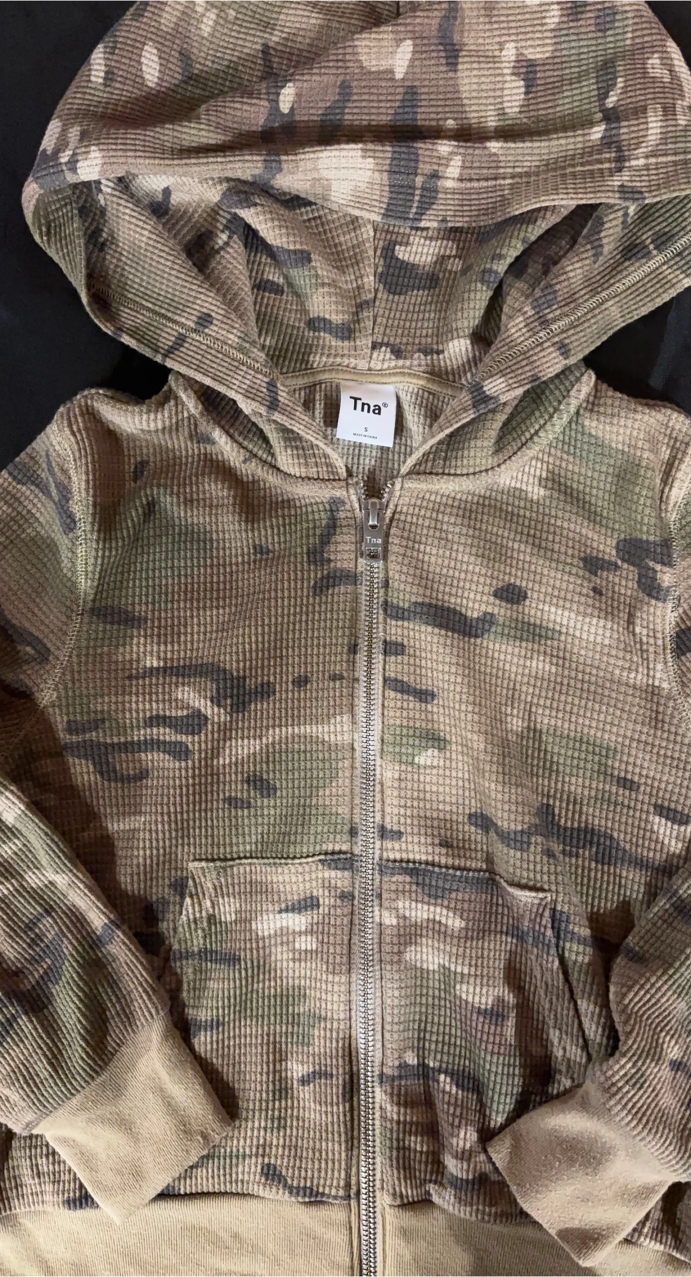 Buy & SellTna Camo Zip-Up Hoodie Size STna Camo Zip-Up Hoodie Size S$24Tna camouflage zip-up hoodie in size small. It's made from a waffle knit material. This hoodie is great for casual wear.SizeSBrandTnaWHERE TO MEETVaughan Mills- Bass ProView MapSELLERverifiedToni MWoodbridge N1397 reviews0 chats·1 favorites·13 viewsSEND CHAT TO SELLERHi Toni M! I’m interested in your listing.Hi Toni M! I’m interested in your listing.Get the Karrot app to chatSign In to chat