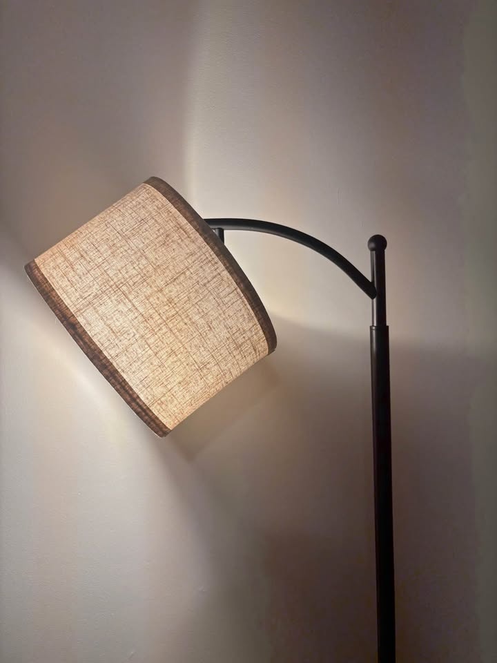 Brand new floor lamp with a dimmable, industrial arc design. Features a WiFi LED smart bulb, compatible with Alexa and Google Home. Suitable for living rooms and bedrooms. Available in multiple colors. This reading lamp is black.