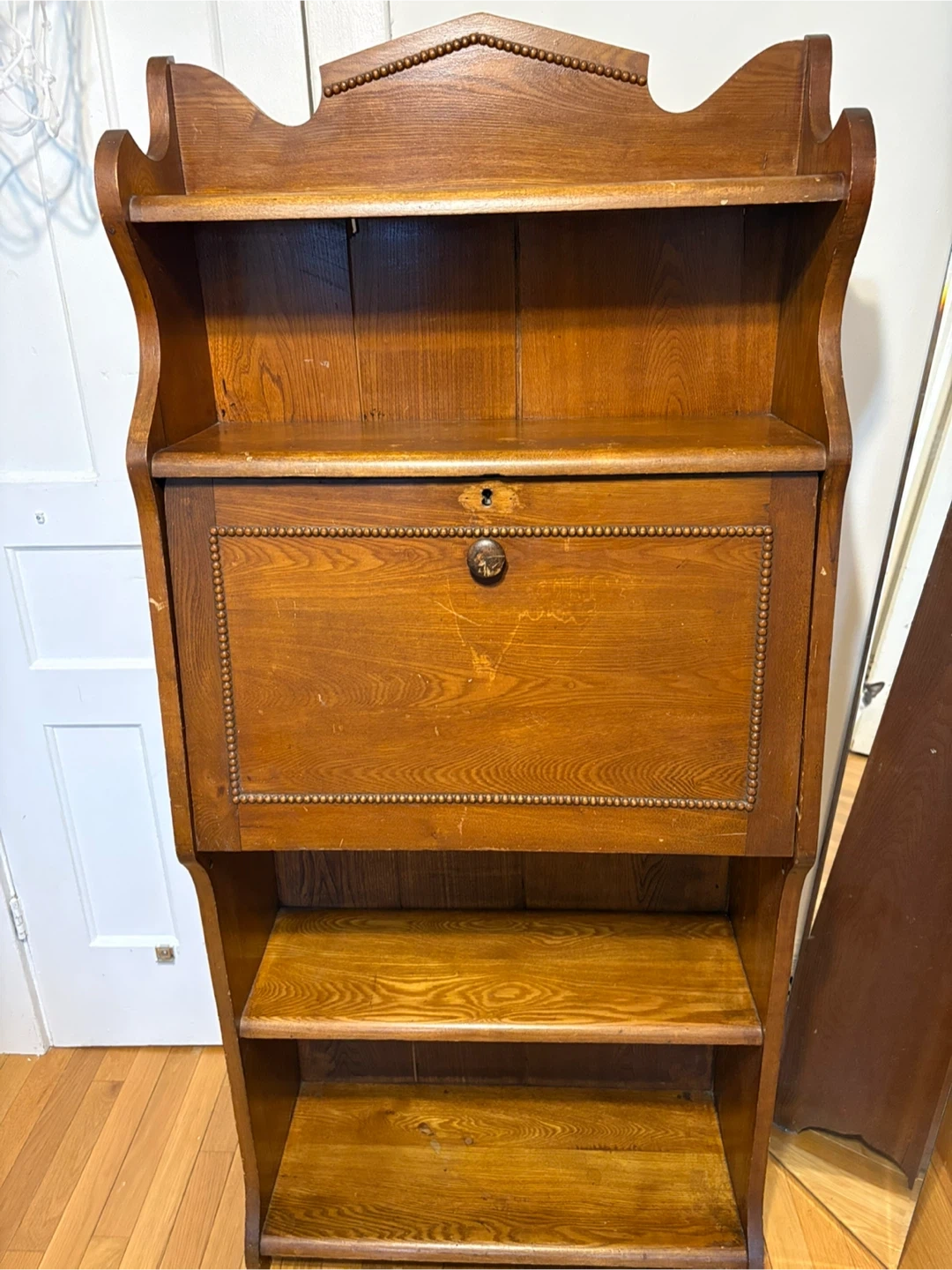 Vintage late Victorian Wooden Secretary Desk with Shelves