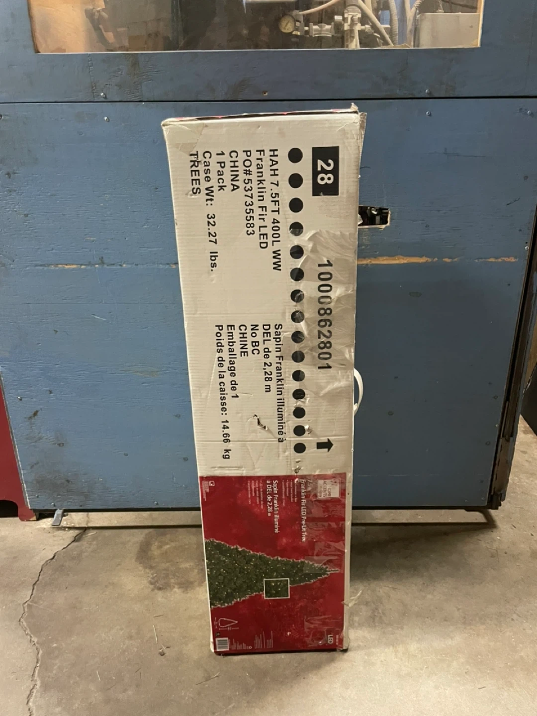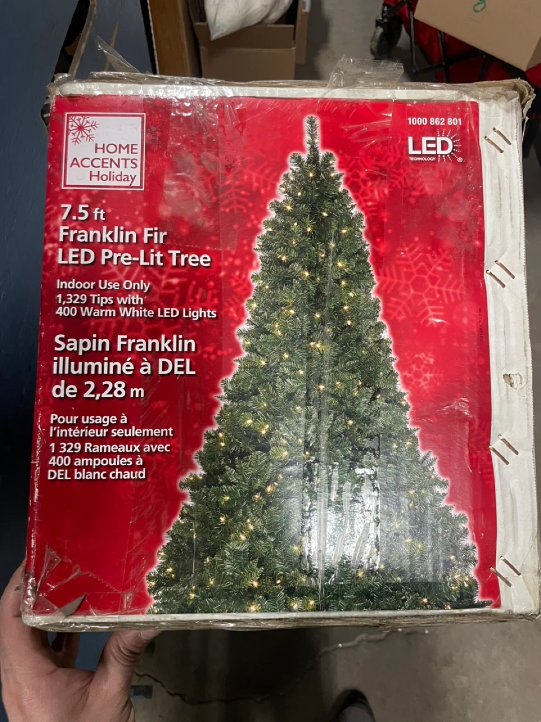 This is a 7.5 ft Franklin Fir LED Pre-Lit Tree. It has 1,329 tips and 1,329 warm white LED lights. It's for indoor use only.