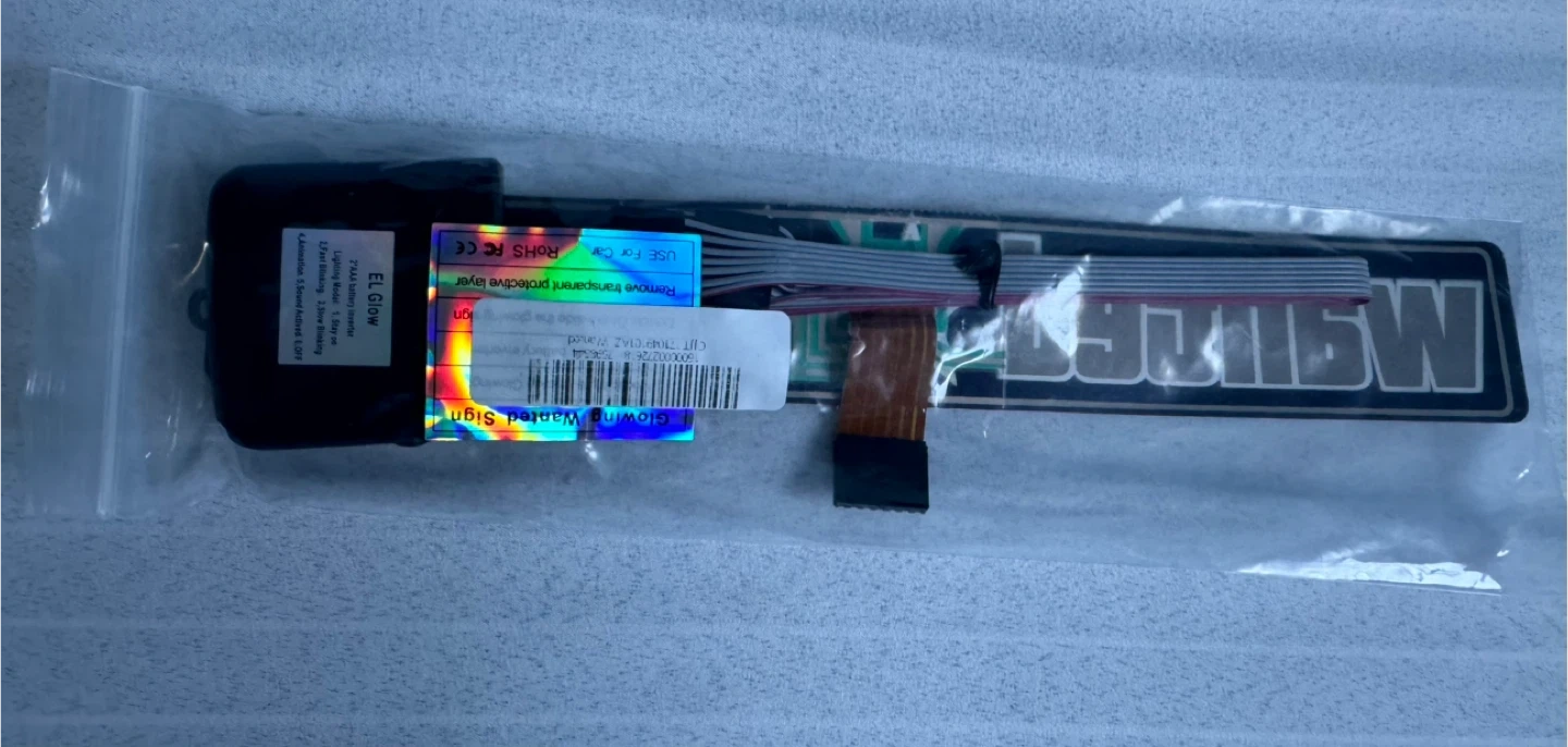 Glowing EL car window sticker - Wanted 5 Star GTA design. Includes controller with 6 lighting modes: stay on, fast blink, slow blink, animation, sound activated, and off.