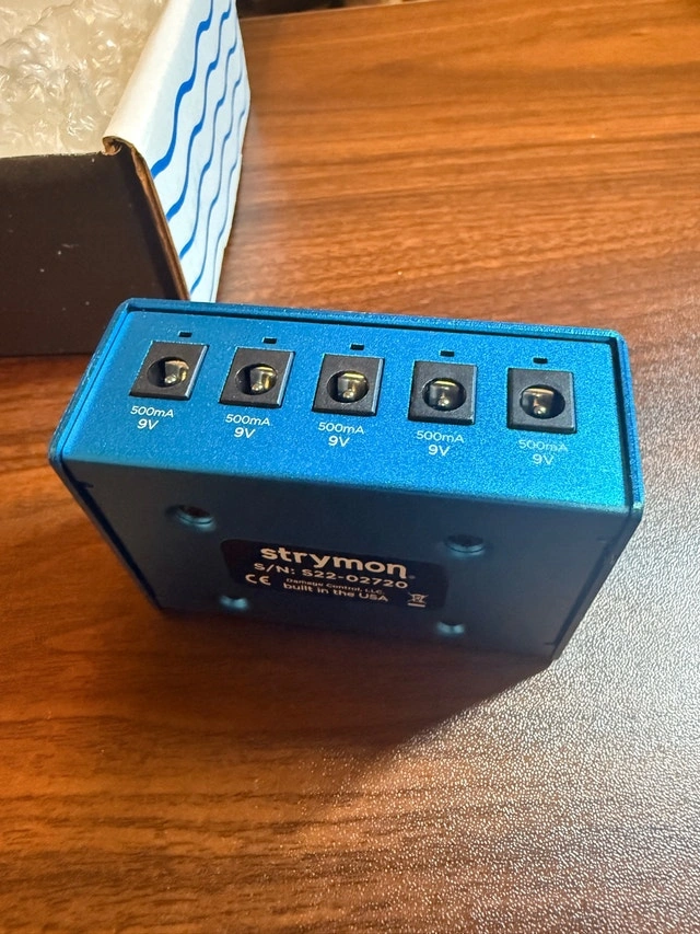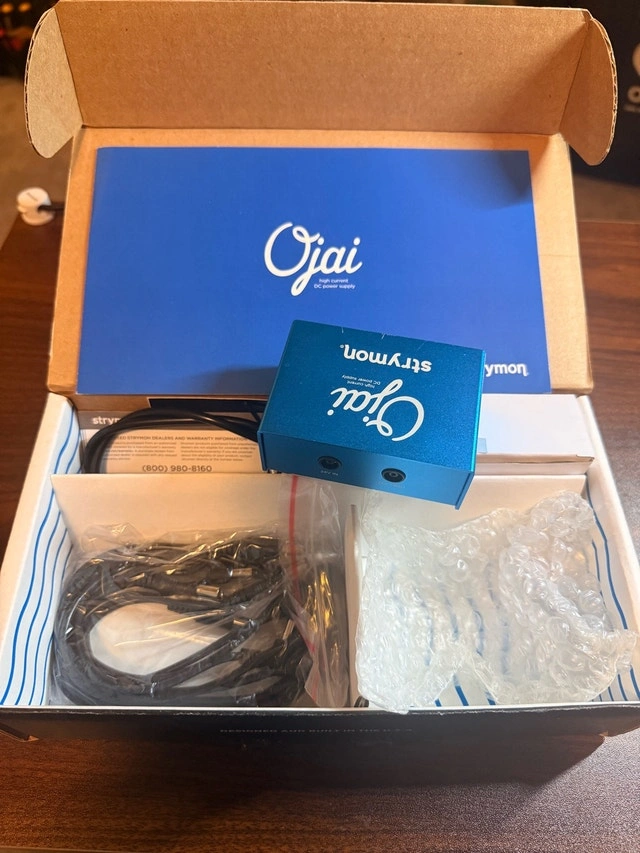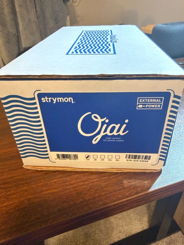 Selling a Strymon Ojai high current DC power supply for effects pedals. Provides clean and reliable power, ideal for pedalboards. Offers five 9V outputs at 500mA each. This unit is in excellent condition and comes with its original box and cables. Specifications: Five 9V DC outputs, 500mA per output, 24V Thru Jack. Includes original box and cables. If the ad is up, it's available.