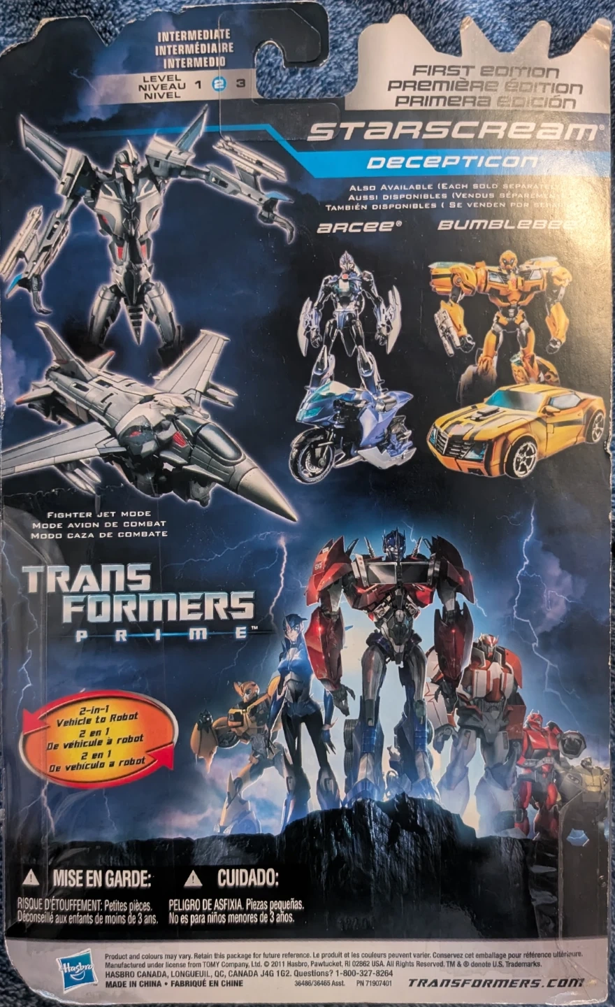 This deluxe size Transformers Prime, first edition, Star scream action figure transforms from fighter jet to robot, and back again.
