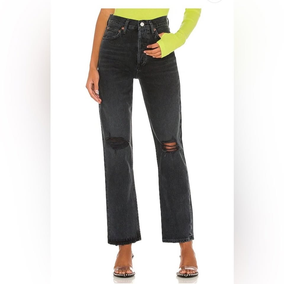 Classic black distressed jeans in AGOLDE’s iconic Pinch Waist fit. High-waisted, flattering, and made from 100% cotton for that true vintage–denim feel.