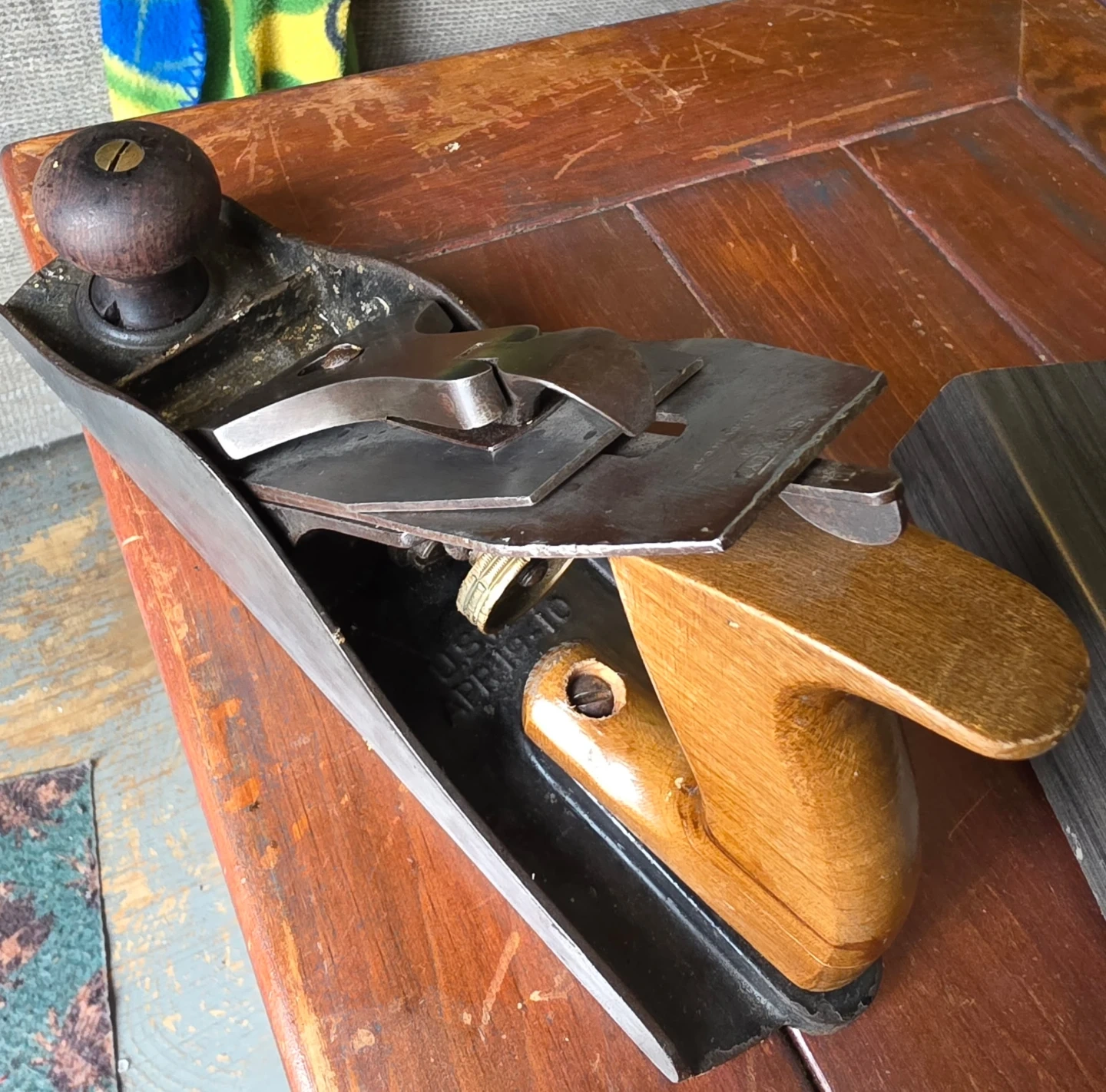 This is a vintage Bailey No. 4 smoothing plane. It's made of metal and wood components. This tool is useful for woodworking projects!
