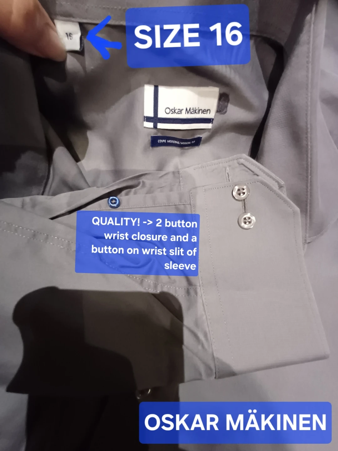 NEW Oskar Mäkinen men's long sleeve shirt in Grey, size 16. Great quality shirt.