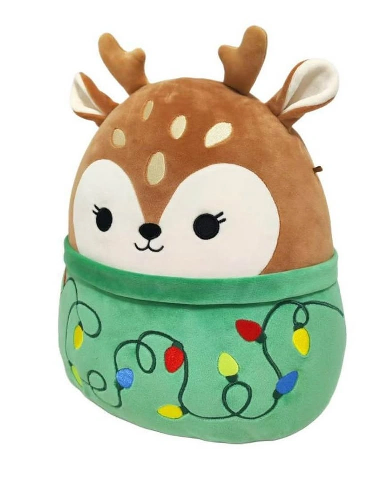 Festive Squishmallows “Dawn.” This reindeer plush has a cute green outfit with colorful Christmas lights. Super soft and cuddly. Brand new with original tag.