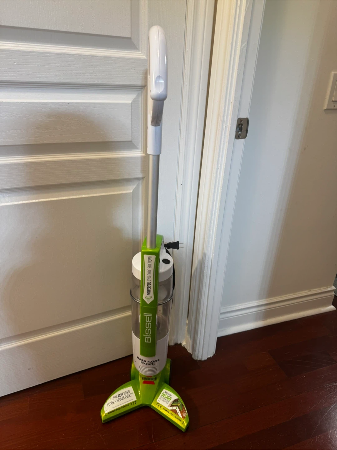 Bissell Hard Floor Expert vacuum designed for efficient cleaning on hard surfaces. It features powerful cyclonic suction and a compact design, making it easy to maneuver and store. The vacuum is in good working condition, ready to help keep your floors spotless. It's perfect for quick cleanups and maintaining the cleanliness of your home without the hassle of cords or heavy equipment. It's been well-maintained.
