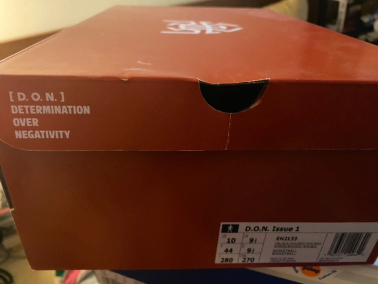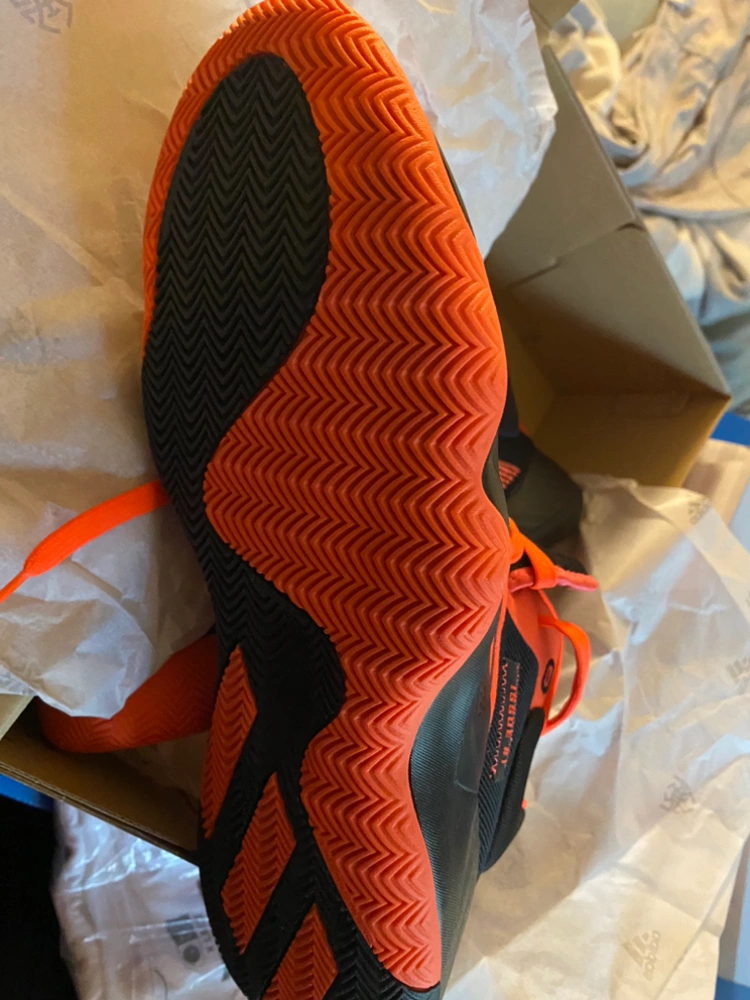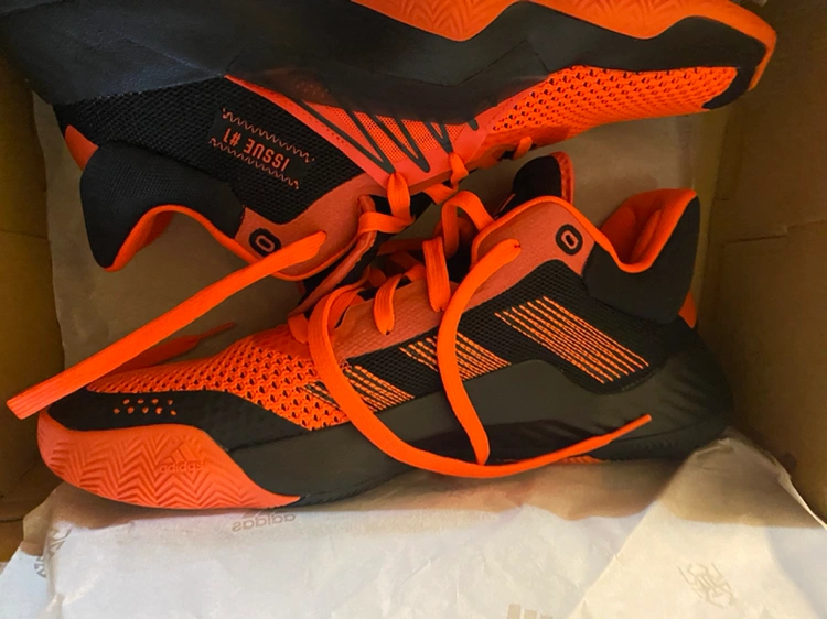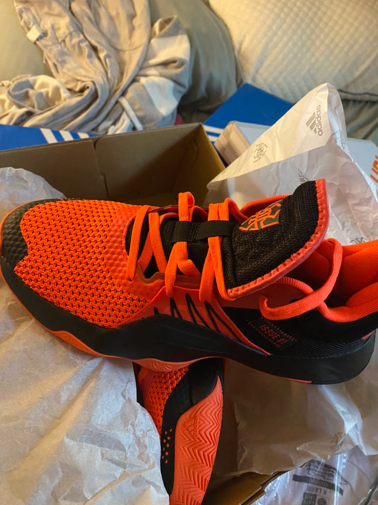 Mens US size 10. Orange and black Adidas D.O.N. Issue 1. Only tried on once, tiny bit too small for me reluctant to sell original price over $140. In box extremely clean