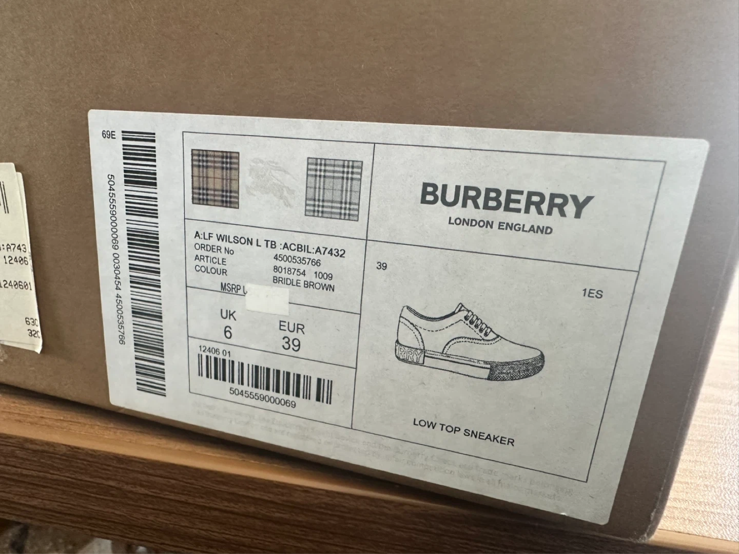 Burberry London England Low Top Sneakers - UK 6 / EUR 39