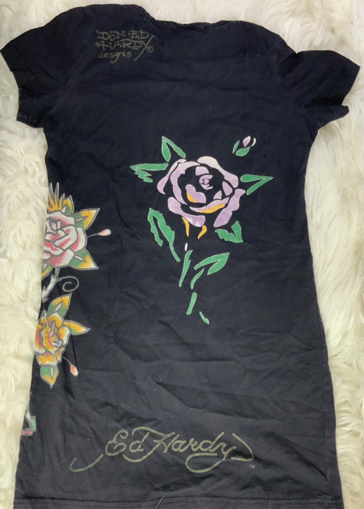 Edhardy women’s T-shirt black size Medium. Love this shirt very nice and comfy. Just sitting in my closet.