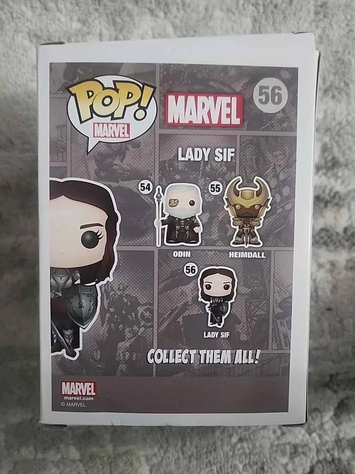 Collectible Funko Pop! figure of Lady Sif from the Marvel series, number 56. Still in its original box, which is in great shape.