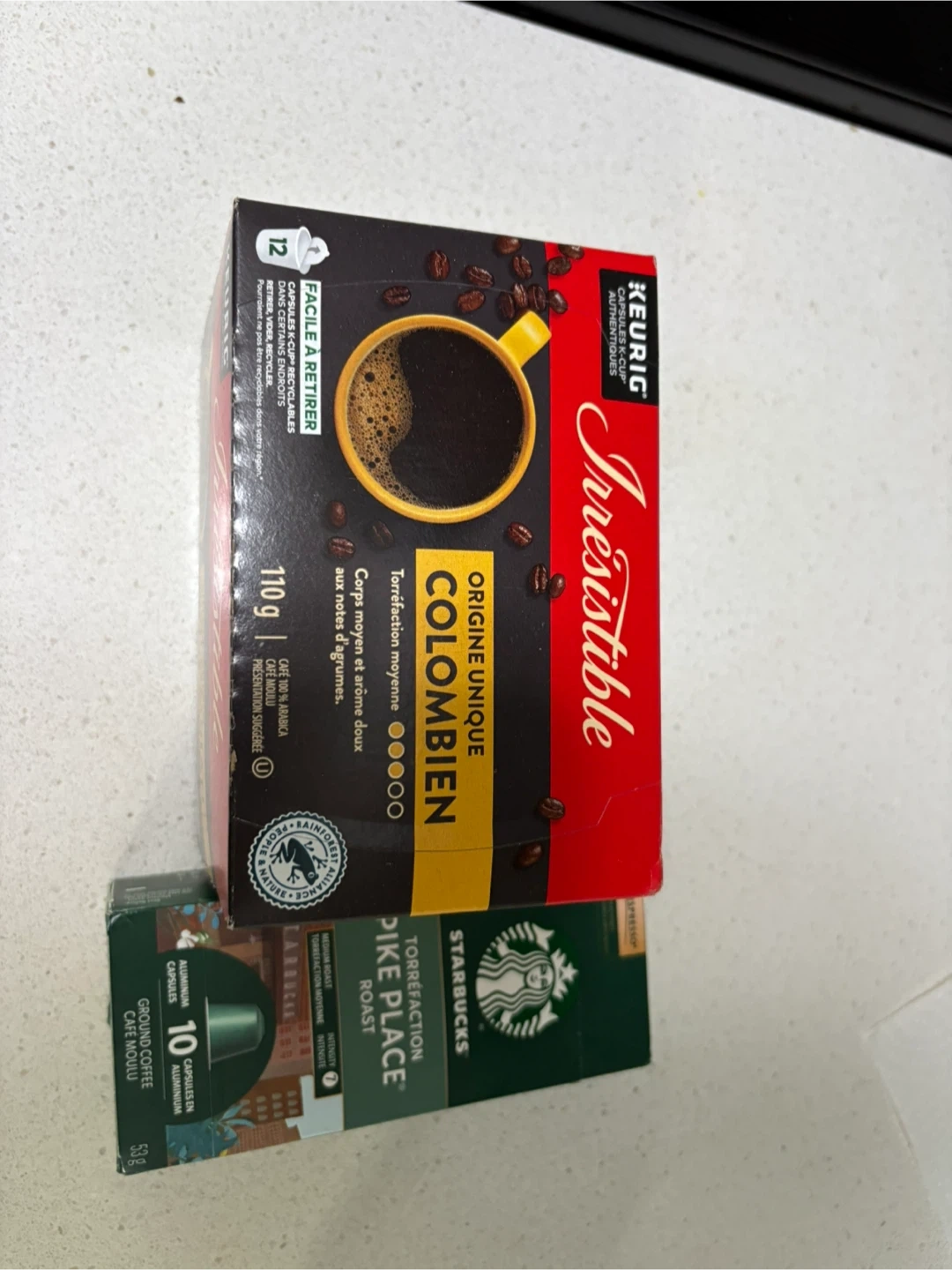 Irresistible Colombian single-origin coffee pods. This coffee has a medium roast with a medium body and a sweet aroma with citrus notes. It's made with 100% Arabica coffee. Starbucks Pike Place Roast capsules also included.
