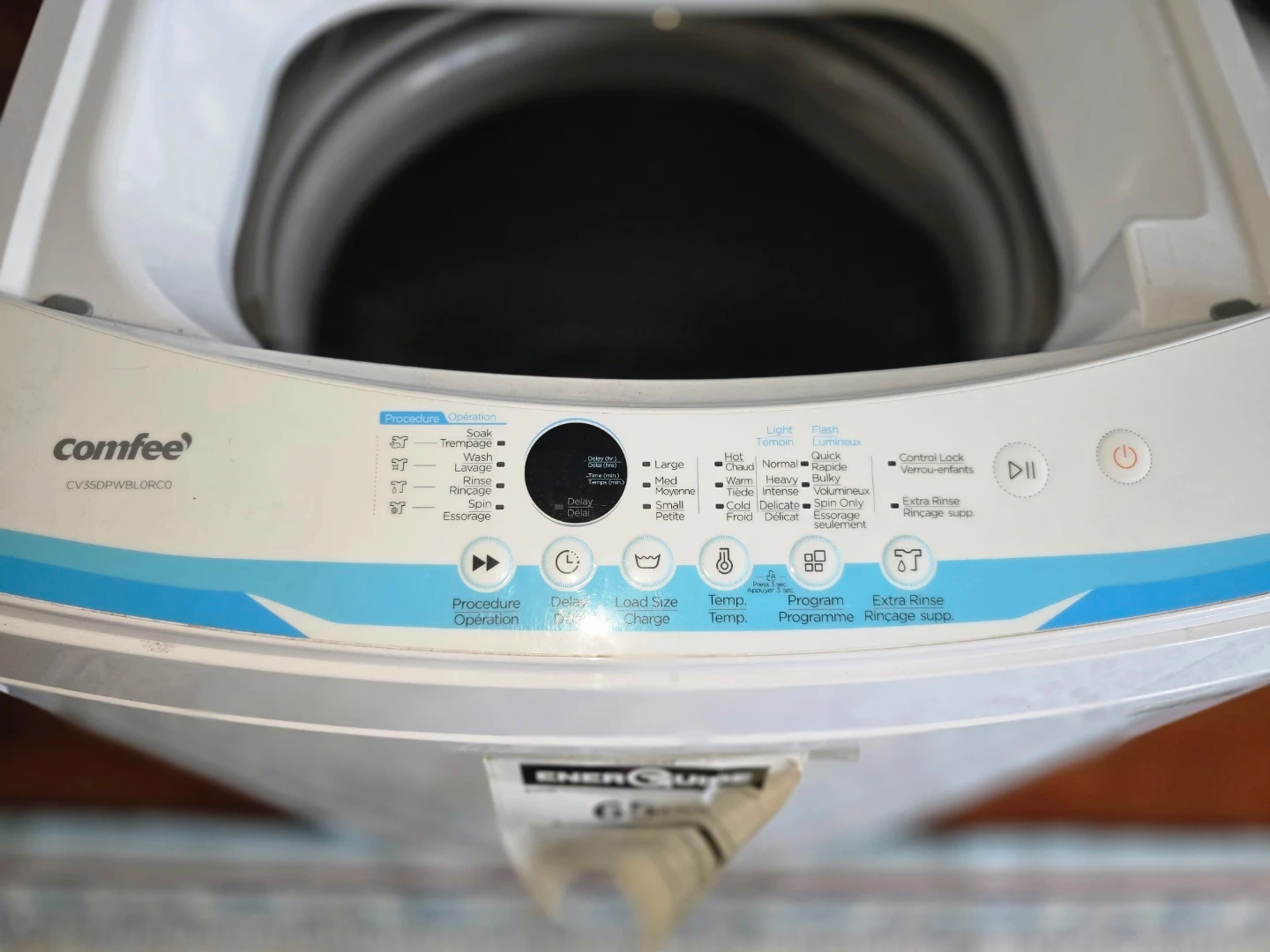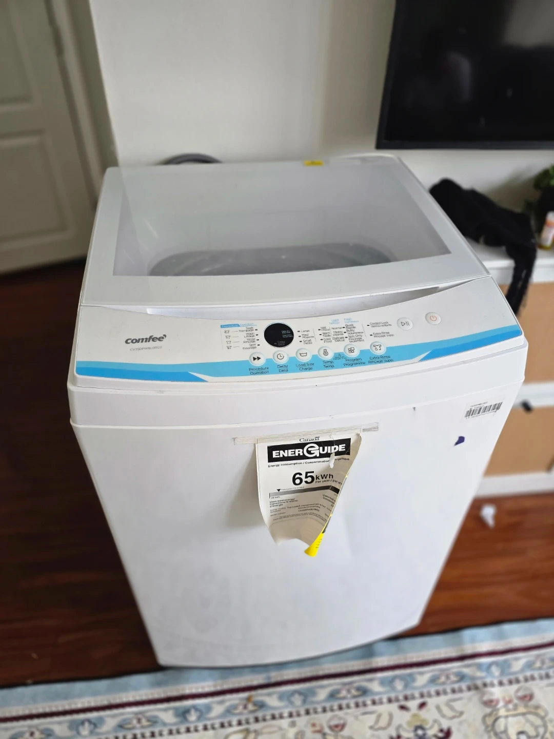 Selling a Comfee' top load washing machine in white. It's in great working condition and ready to go! This washer has various settings for different types of loads, making laundry day a breeze. Perfect for small spaces!