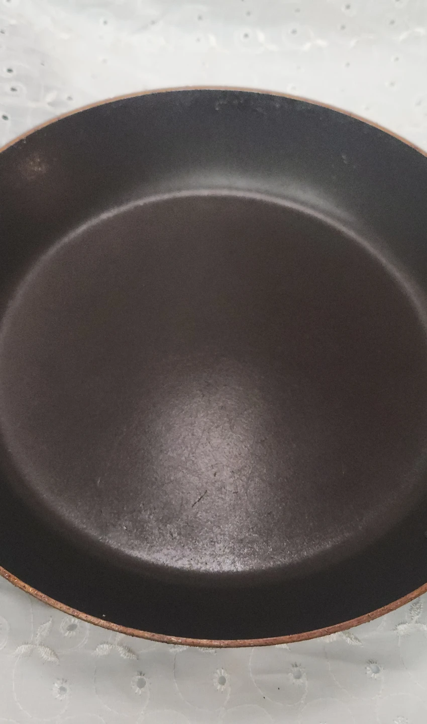 This is a frying pan with a black handle. It's made of metal. It's good for frying your favourite foods!