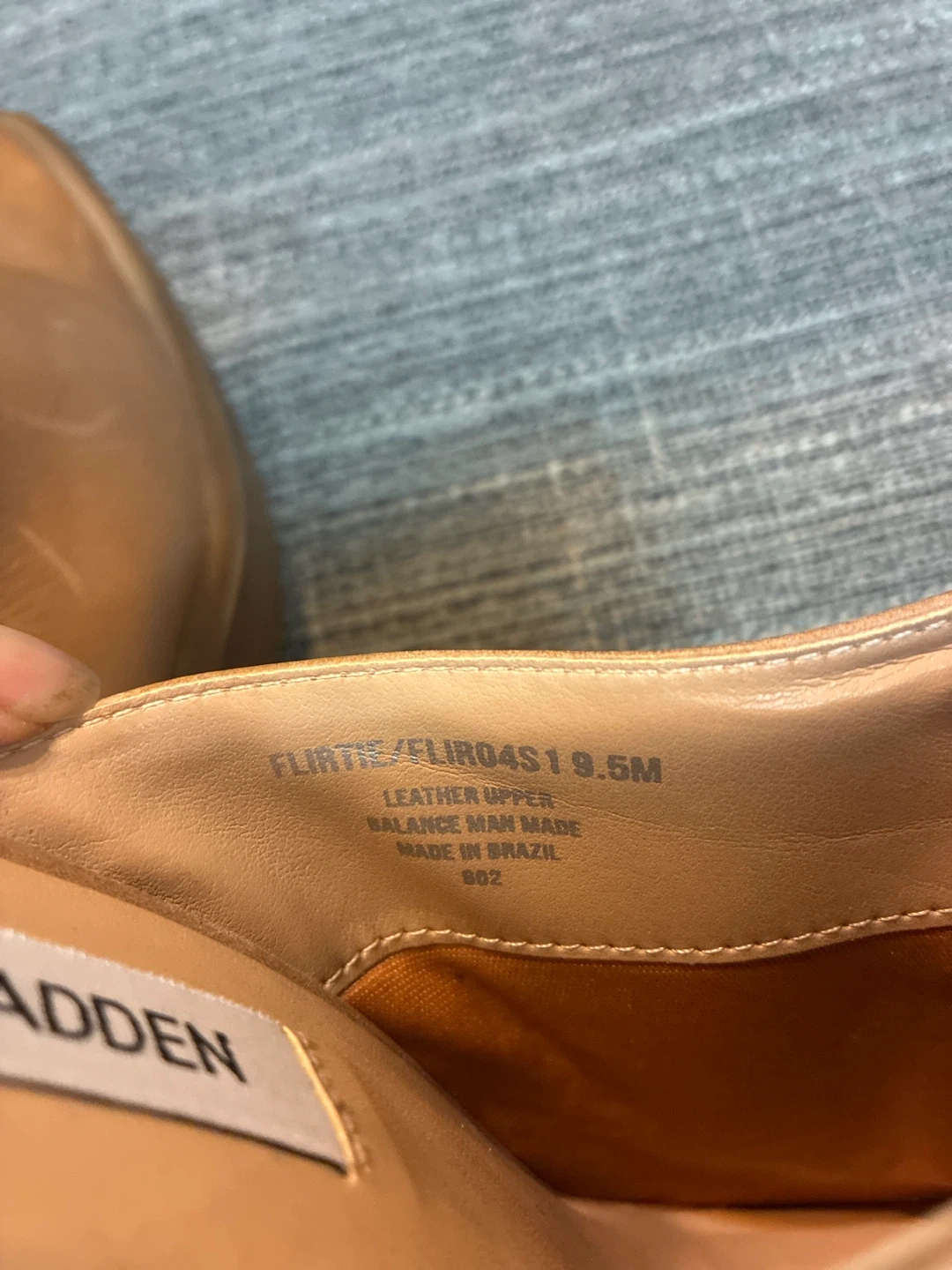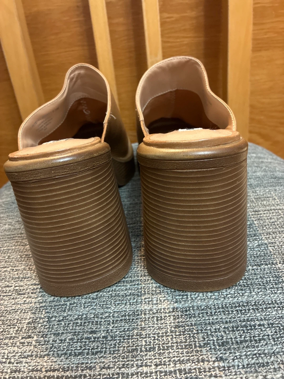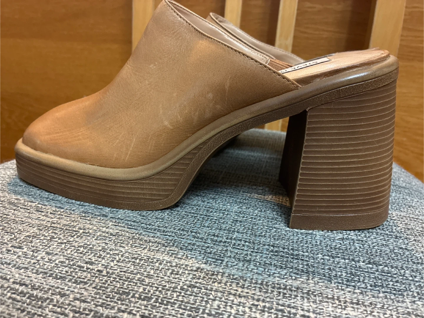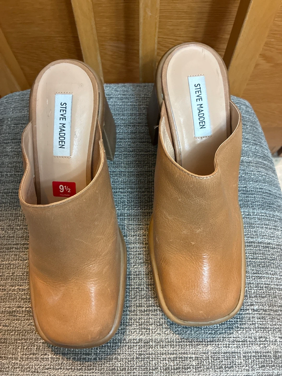 These are a pair of New Steve Madden brown mules in a size 9.5
