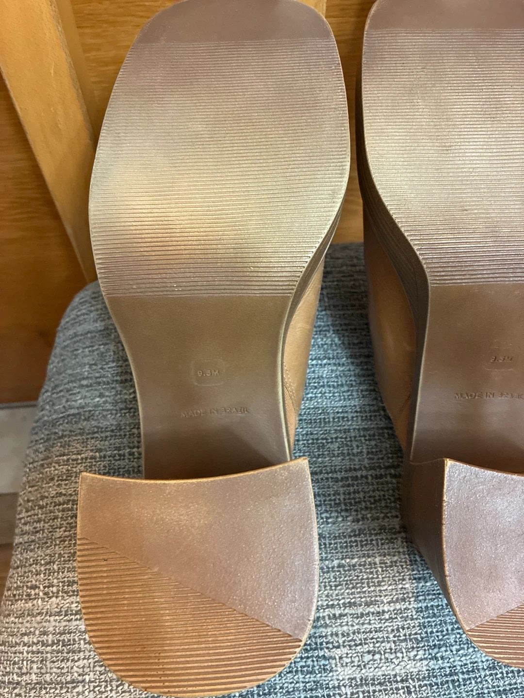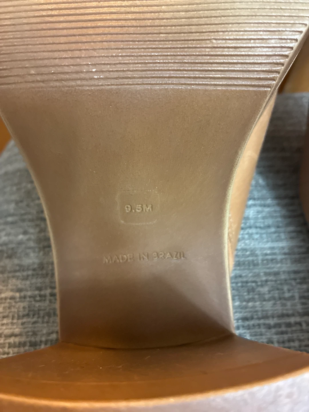 These are a pair of New Steve Madden brown mules in a size 9.5