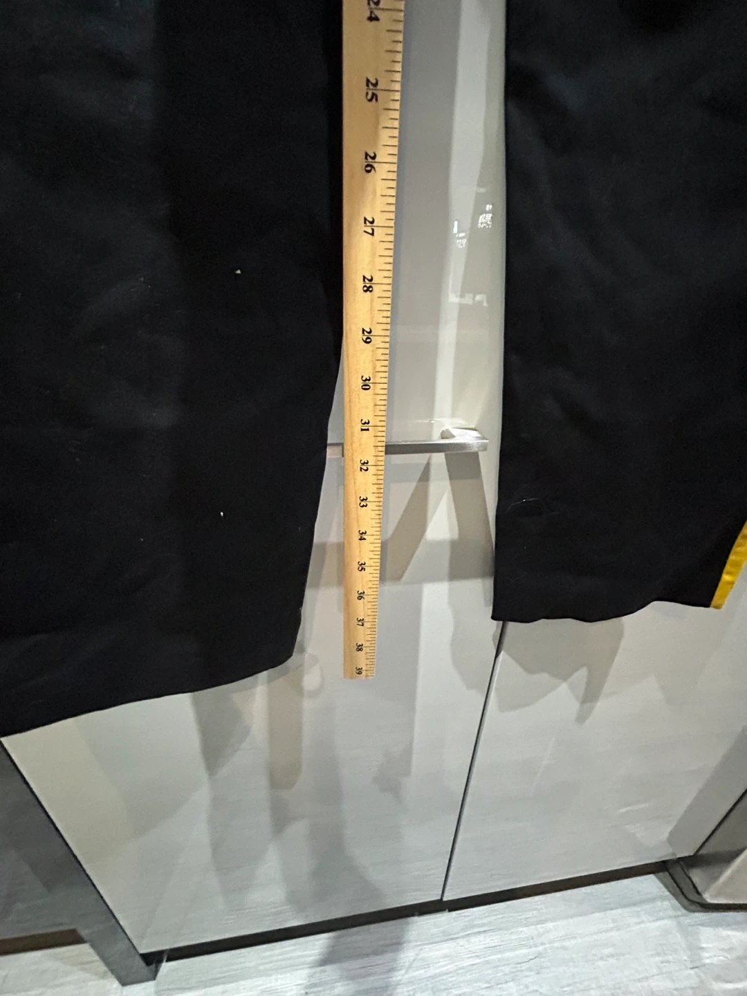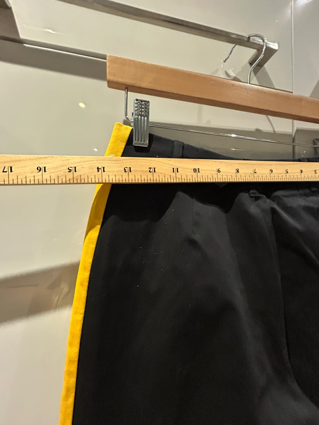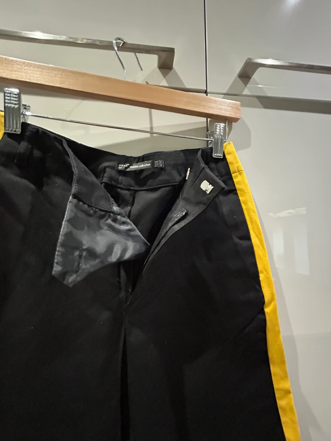 ZARA Trafaluc collection black pants feature a bright yellow stripe down each side. They have a button and zipper closure.