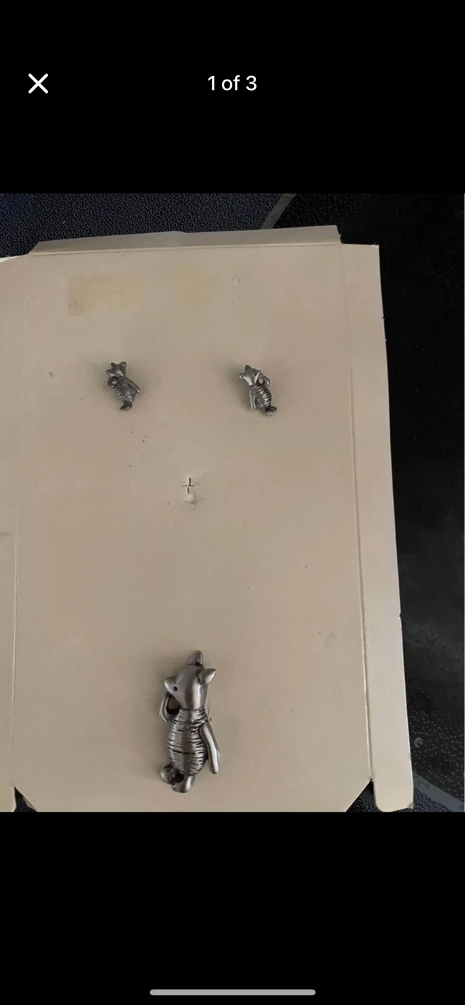 Piglet earrings and pin set. I believe they are pewter but am not 100% positive. They are very nice and would be perfect for any Disney fan. I never wore them.