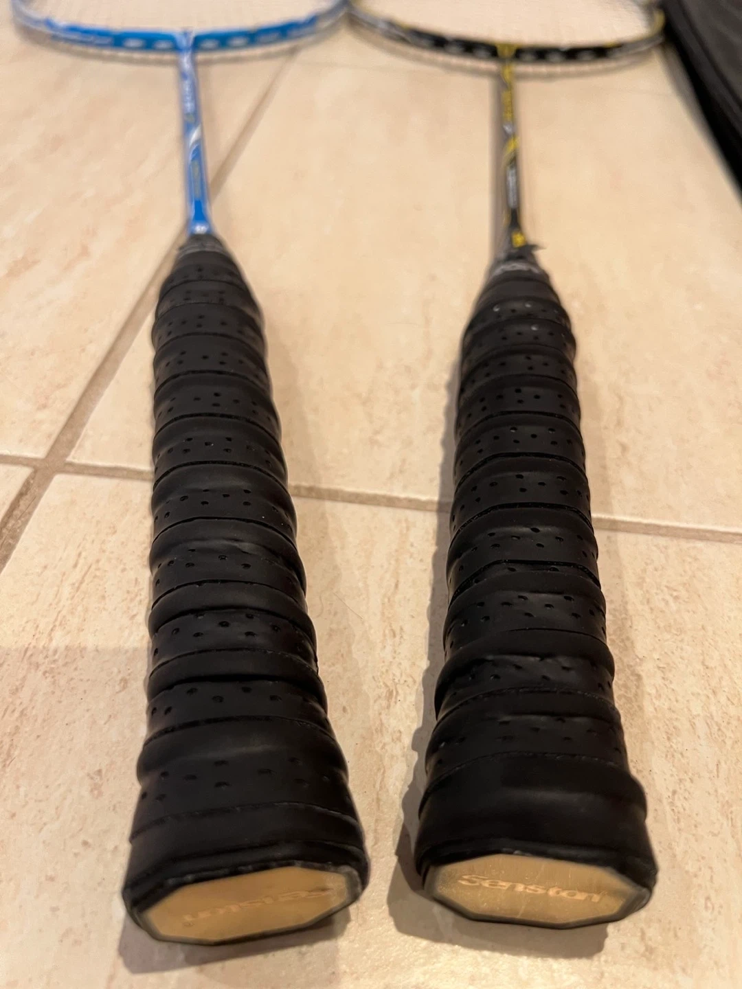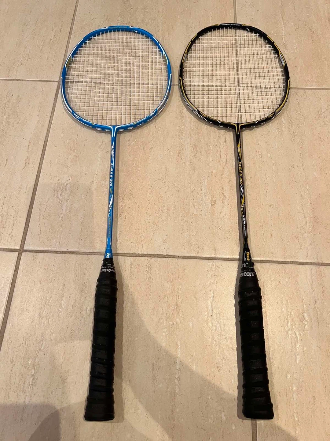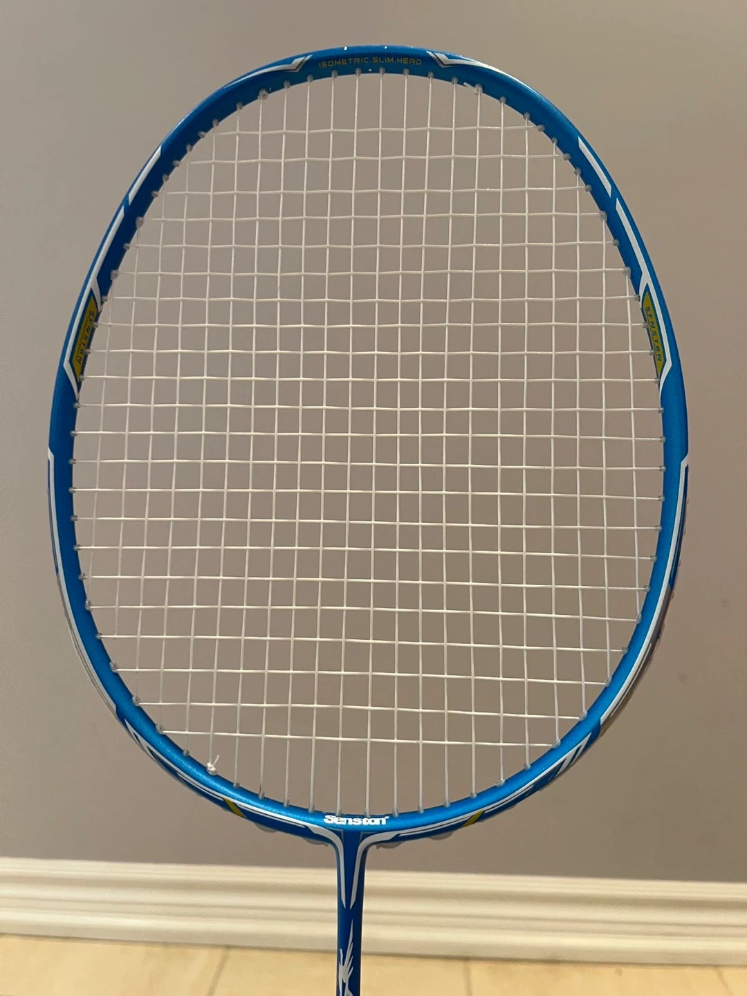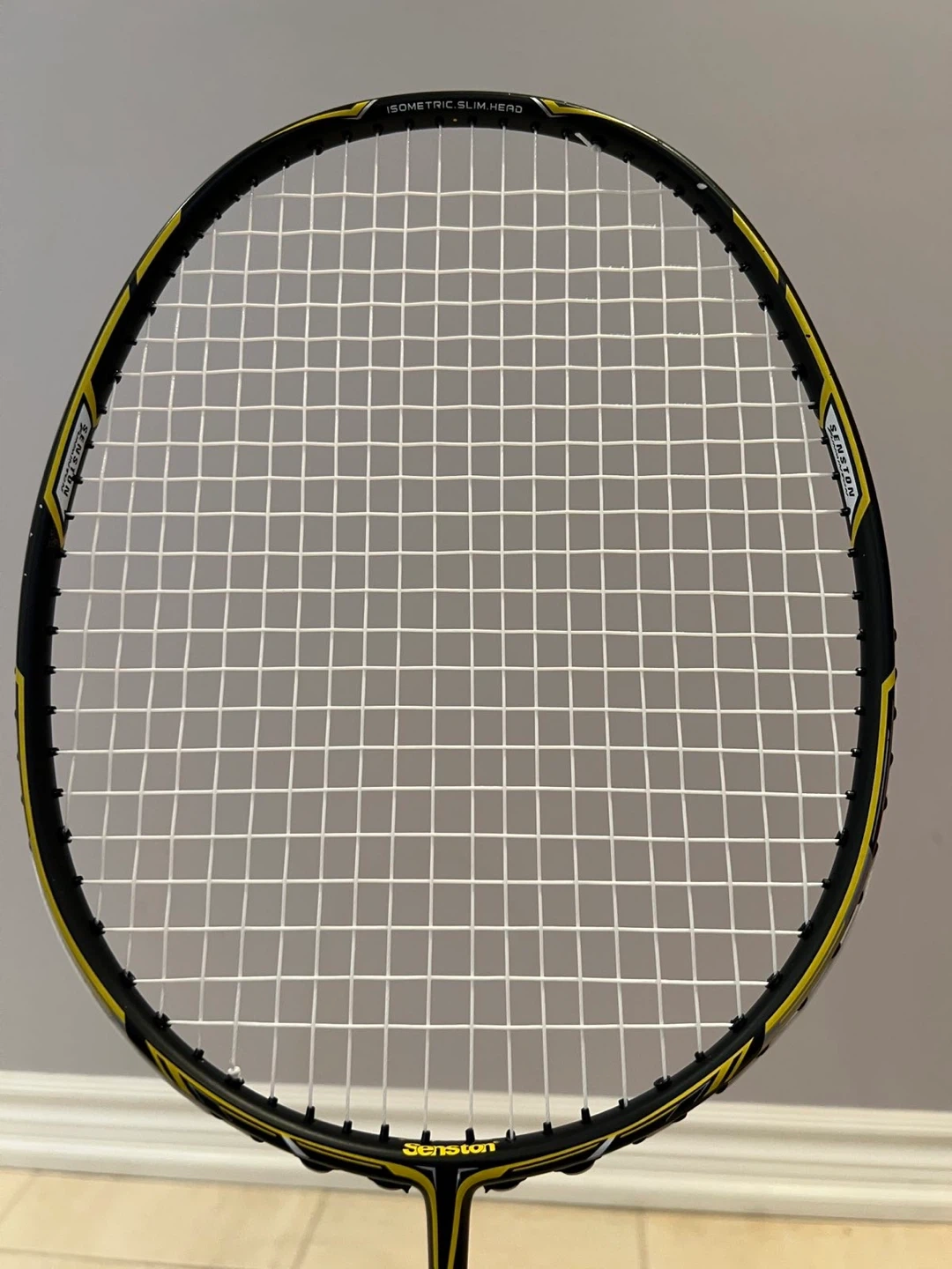 Two Senson badminton racquets, one blue and one black and yellow. Comes with a Senson branded carry bag. These racquets feature nano technology. Great for recreational play!