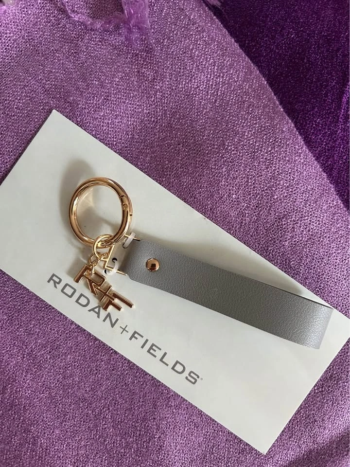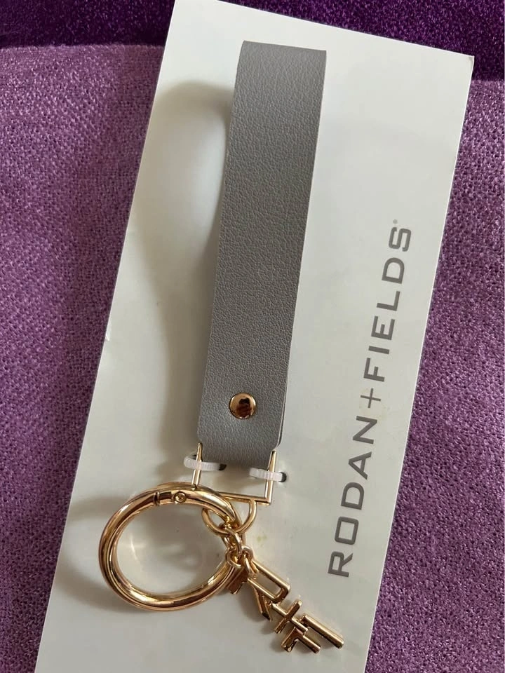 Brand new Rodan + Fields grey leather keychain with a gold-tone metal signature R&F charm. Features a sleek grey leather wrist strap, combining functionality with elegance. Lightweight and easy to attach your keys. The grey strap measures approx. 4" long & 1" wide. Pick up in the Warden and Highway 7 area in Markham. Smoke and pet free home. Cash only.