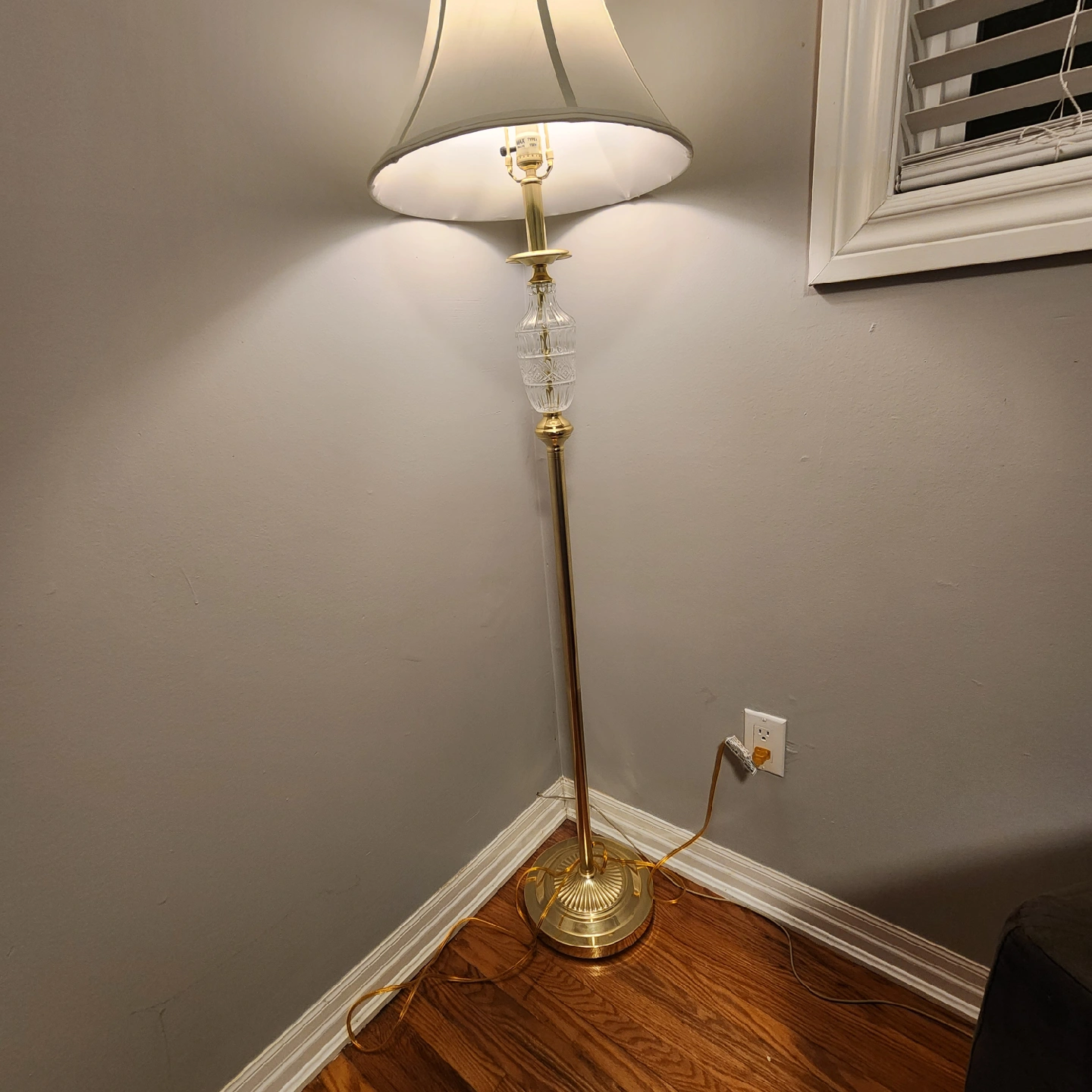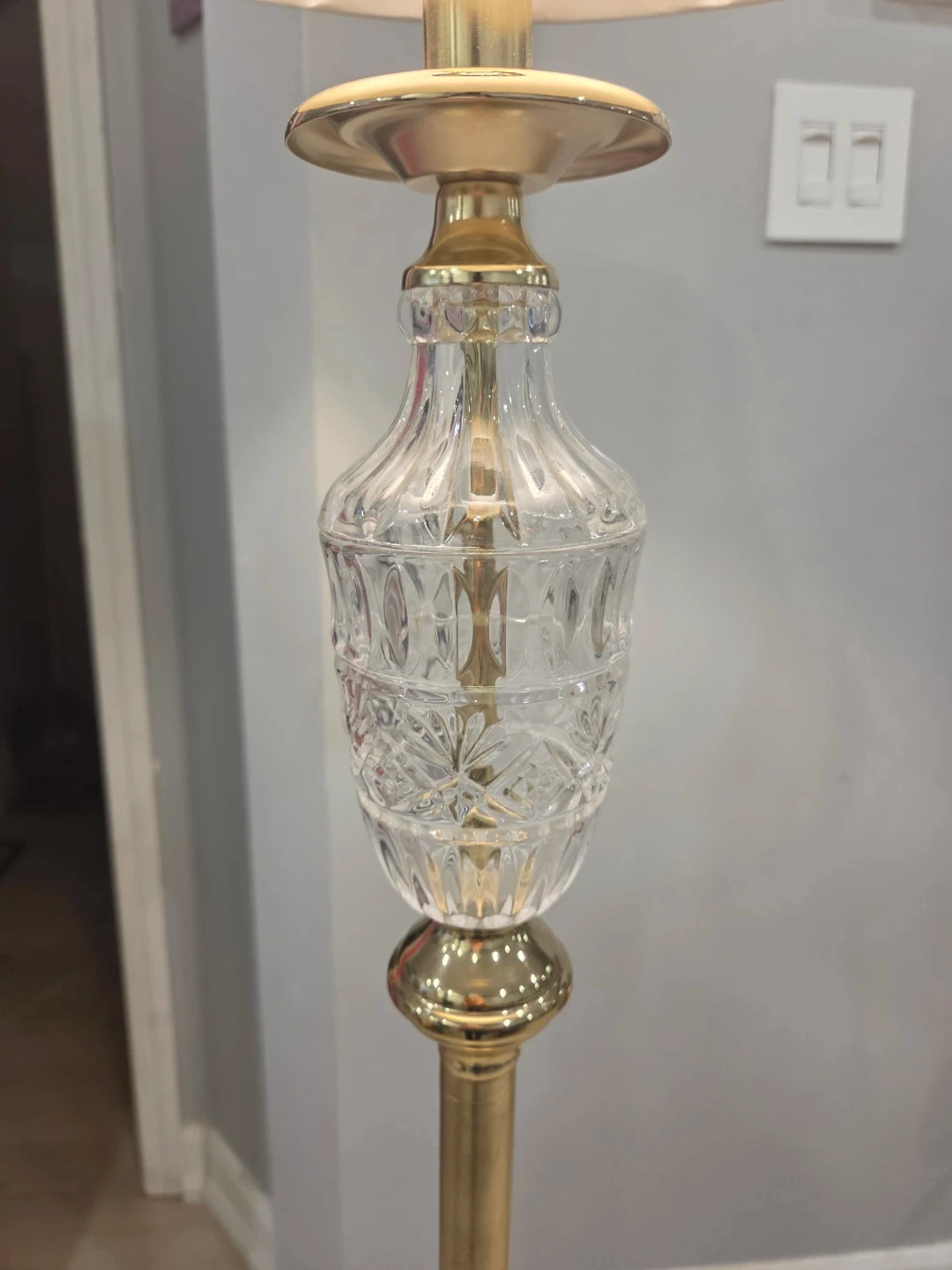 Selling a beautiful floor lamp, with a crystal and gold-tone base. It has a classic design that would look great in a living room or bedroom. The lamp is in excellent condition .