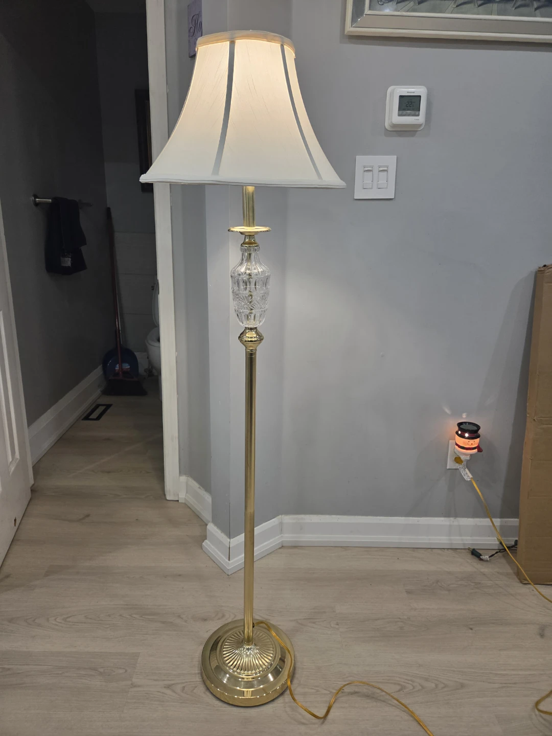 Selling a beautiful floor lamp, with a crystal and gold-tone base. It has a classic design that would look great in a living room or bedroom. The lamp is in excellent condition .