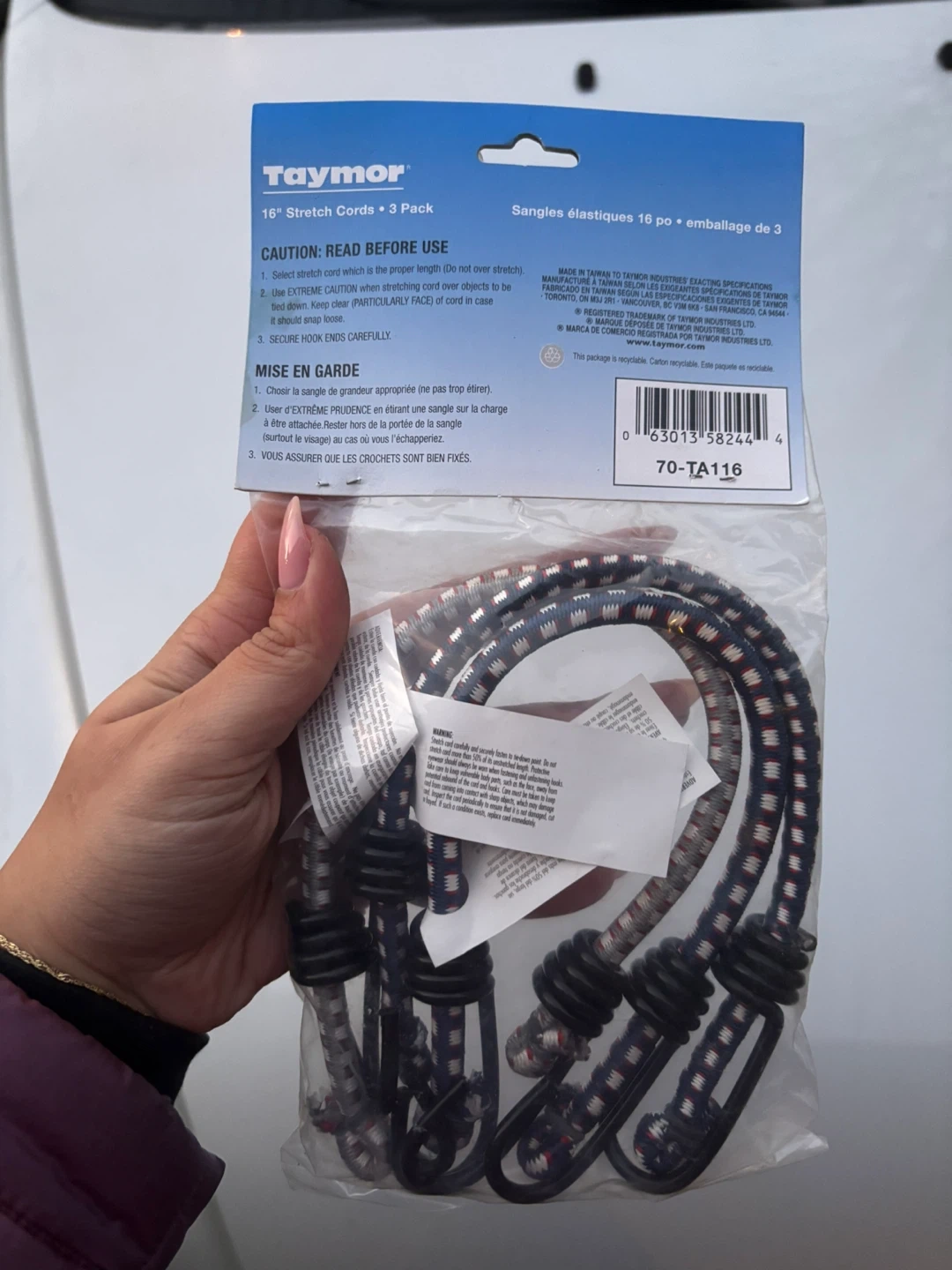 Selling a pack of Taymor 16" stretch cords. This is a 3 pack of tie-down solutions with lasting cord tension and vinyl-coated steel hooks. Perfect for securing items!